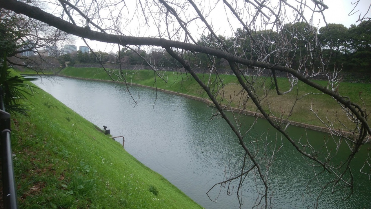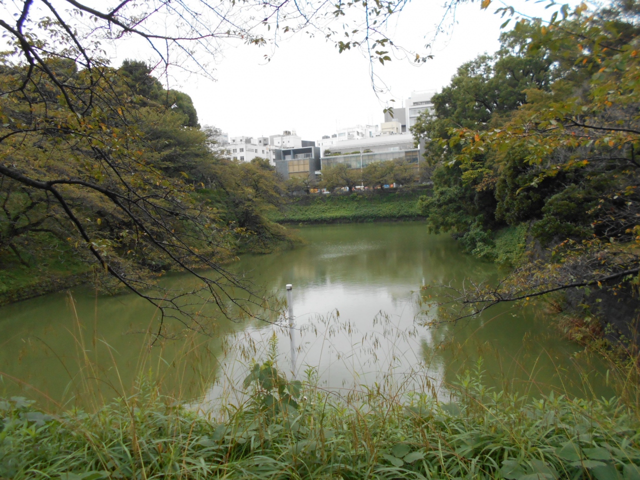 皇居の緑のお堀と青い水面がとてもきれいで、心が洗われるようです。