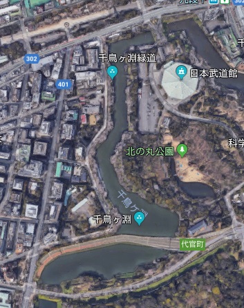従って、現在の千鳥が淵は、田安門の西側から代官通りの北側となっています。