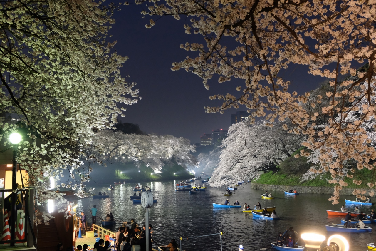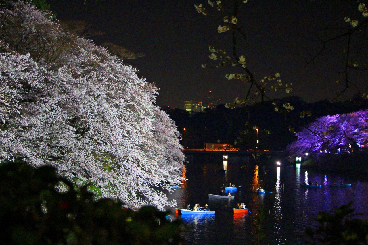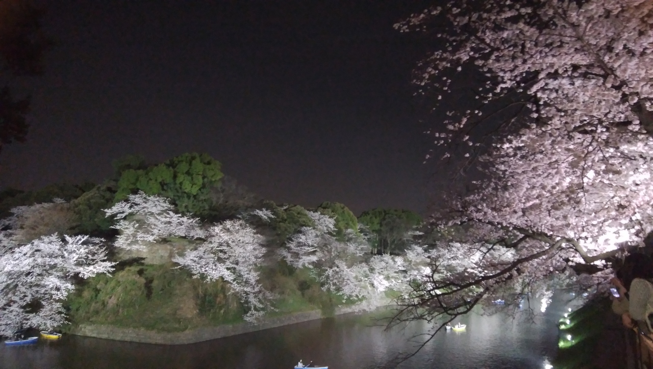 夜桜のライトアップは早いところでは20時までで、平均的には21時までという場所が多い中、皇居の千鳥ヶ淵だけは22時(夜の10時まで)ライトアップをしてくれる太っ腹ぶり。