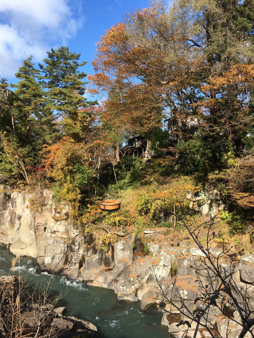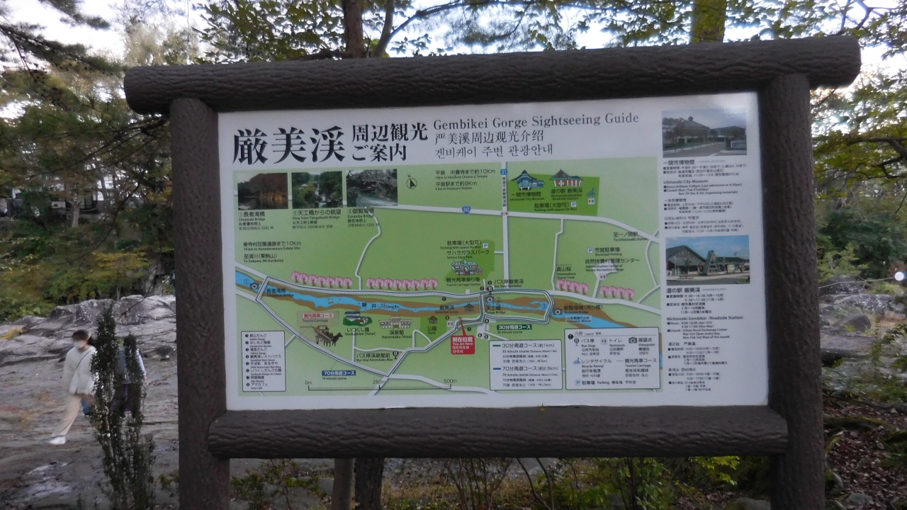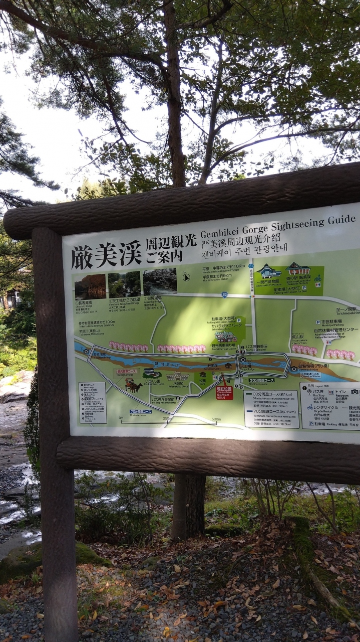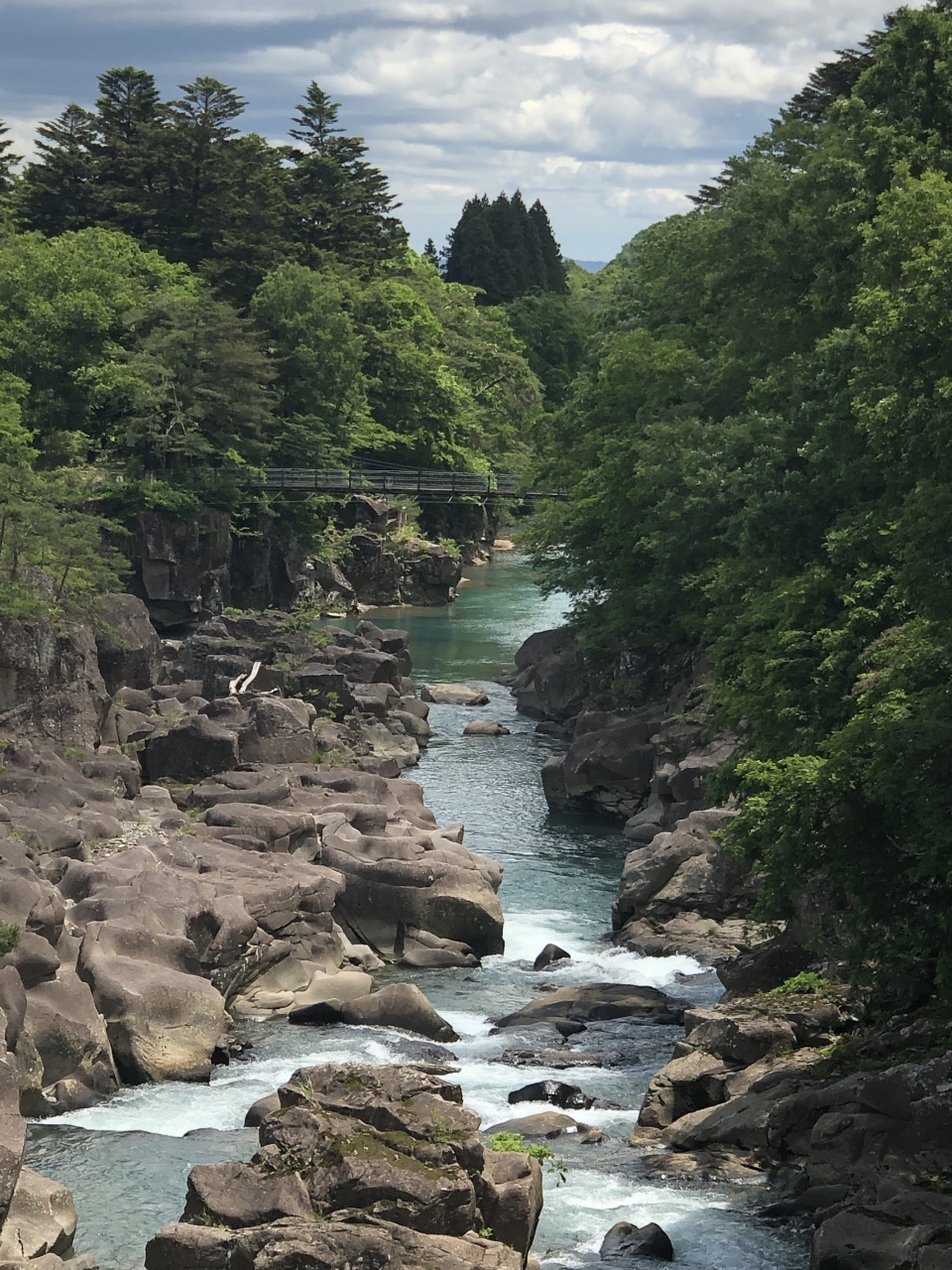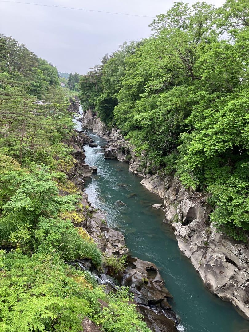 岩手県の磐井川沿いにある渓谷。磐井川が巨岩を浸食し、2kmにわたり渓谷美を見せる。渓流をはわんだ対岸のお茶屋からだんごとお茶を買う「空飛ぶだんご」が名物。吊り橋から眺める蒸留の荒々しい流れと下流のゆったりした淵が対象的。甌穴が見せる渓流美が美しい。名勝天然記念物指定。紅葉の見頃は10月中旬~11月上旬。