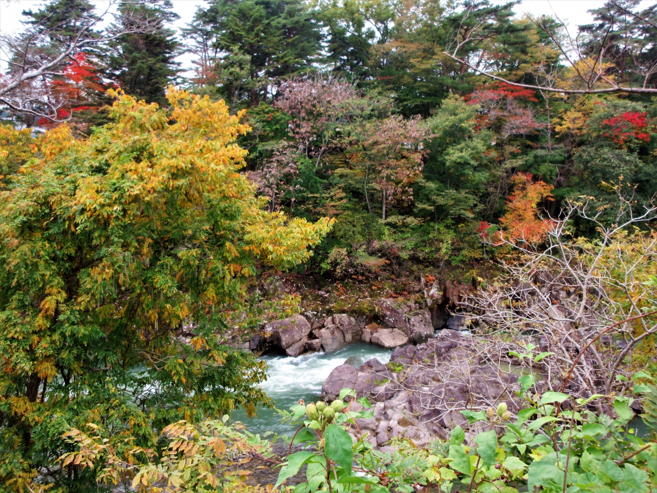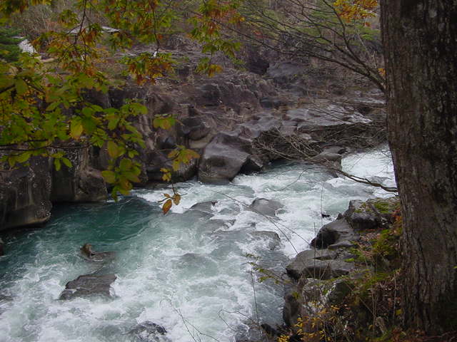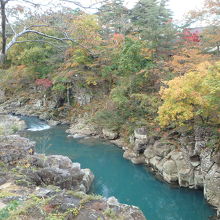 岩と渓流と紅葉が美しい