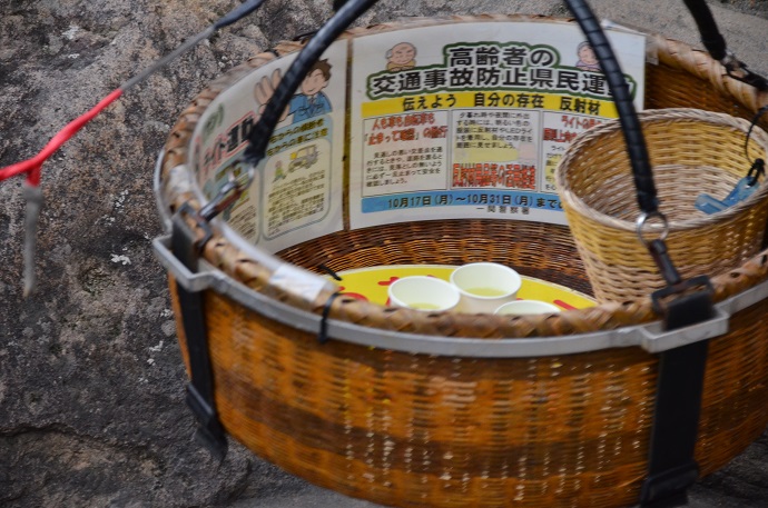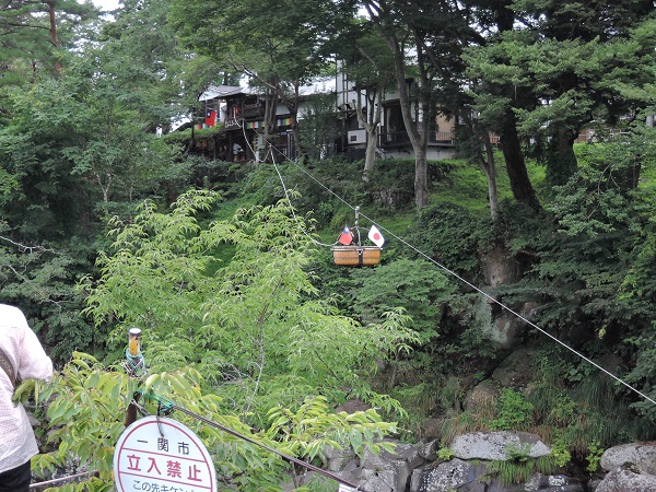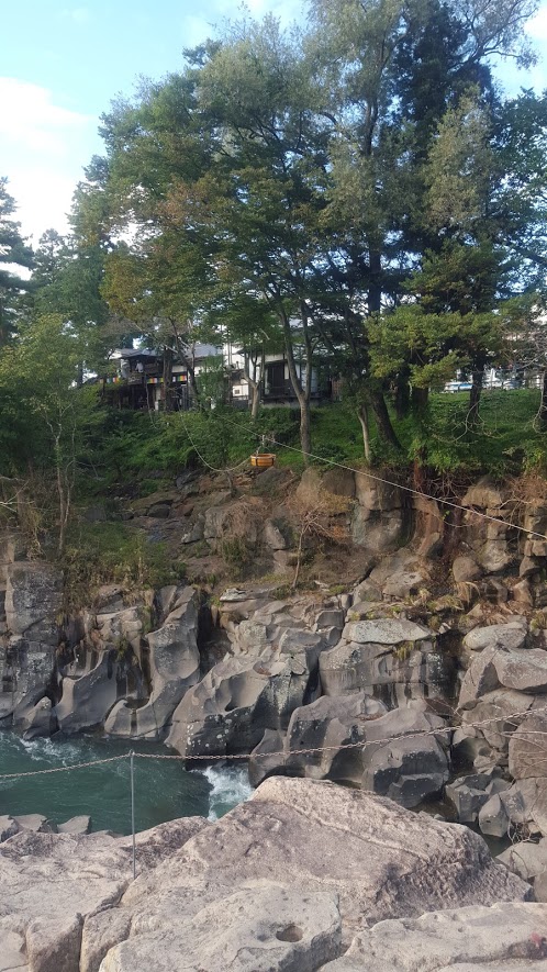 中尊寺からレンタカーで行く、駐車場は橋を渡ったところに土産屋の駐車場が並び、買い物をすると駐車料が無料というので土産物屋に... 続きを読む駐車。10月中旬で若干紅葉していたが、渓谷としては普通で大して見る所はない。ここの名物は、何と言っても「空飛ぶ団子」で、対岸の団子屋から、架線に吊るされた籠に乗って団子が買えること。籠にお金を入れて木槌を叩くと、籠が店に回収され、暫くすると団子とお茶が入った籠が戻ってくる。400円の団子は3本入っていてなかなか美味しくお茶は無料。数人並んでいると時間はかかるが、辛抱して並ぶ価値はある。花(渓谷)より団子とは厳美渓のこと。 閉じる