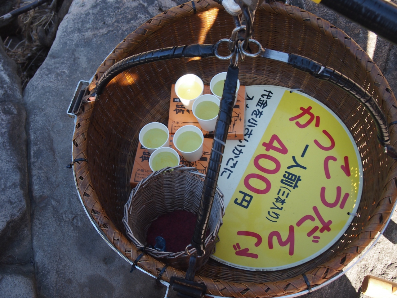 2人分の団子代金(400円¥×2)を載せたカゴが