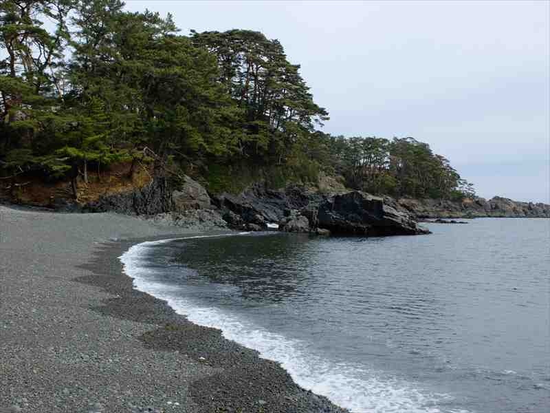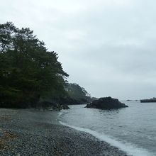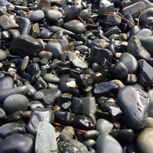 碁石海岸の名前の由来である黒い玉砂利のある碁石浜