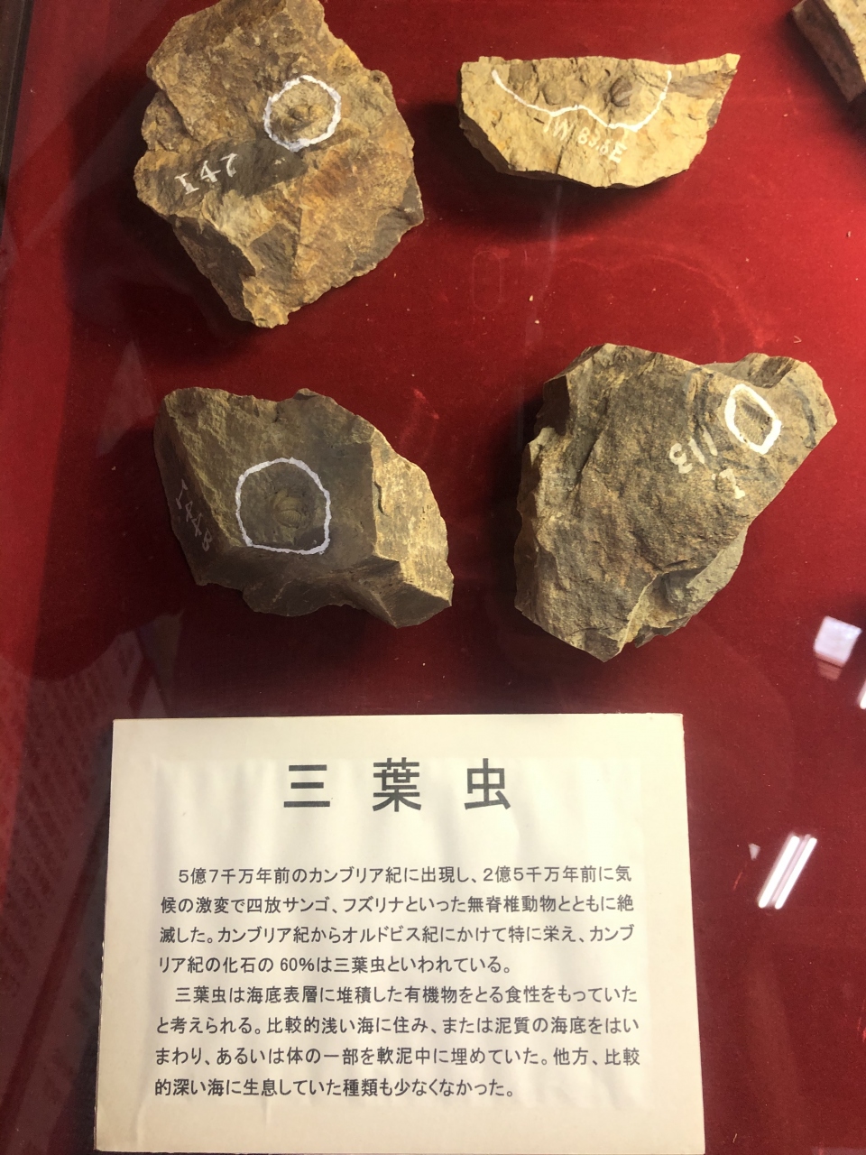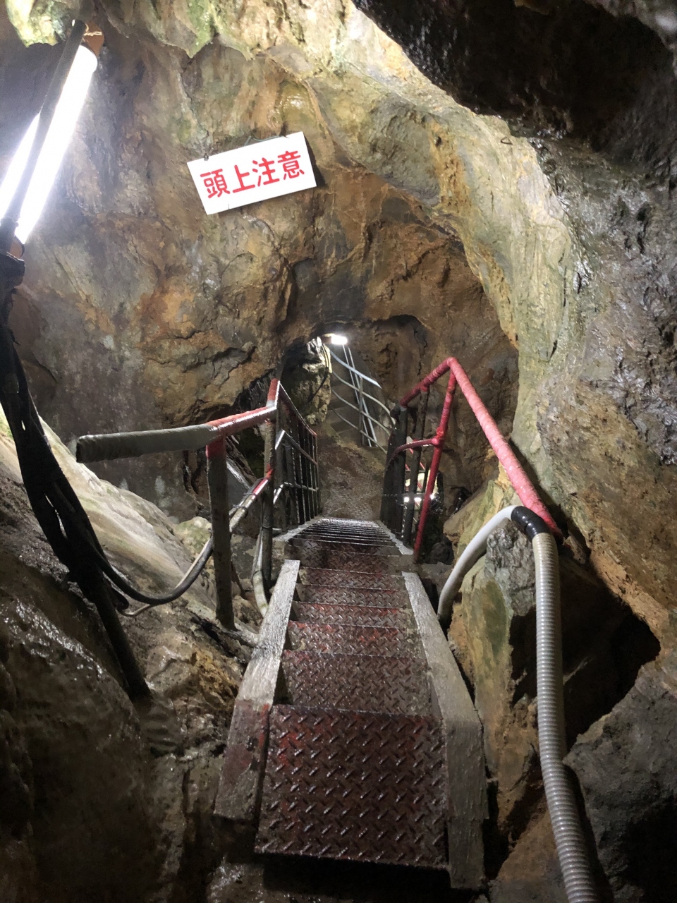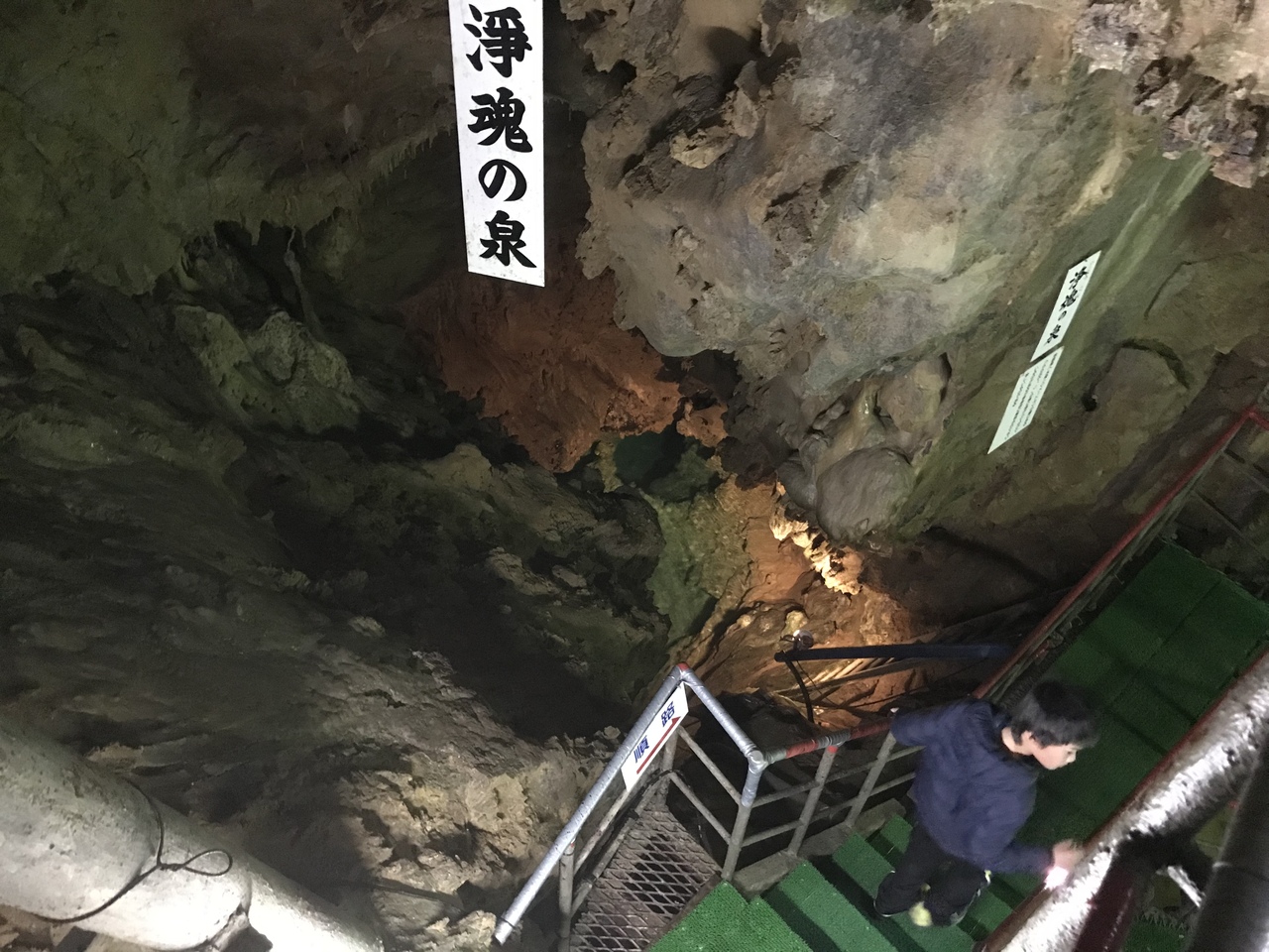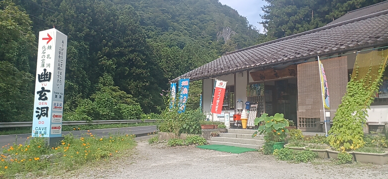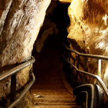 鍾乳洞特有のつらら石、石筍、石柱、またウミユリ、三葉虫の化石を見ることができる