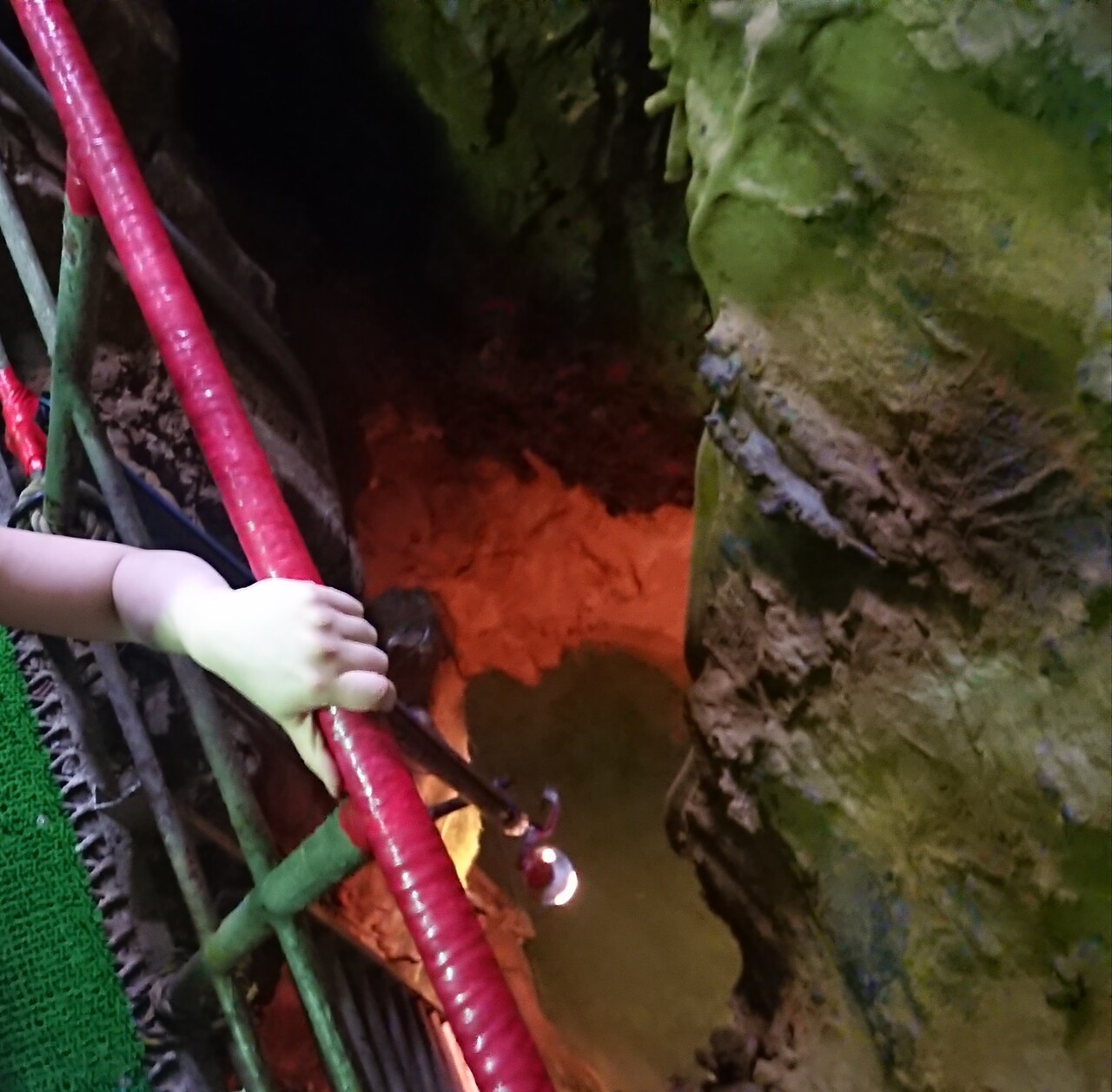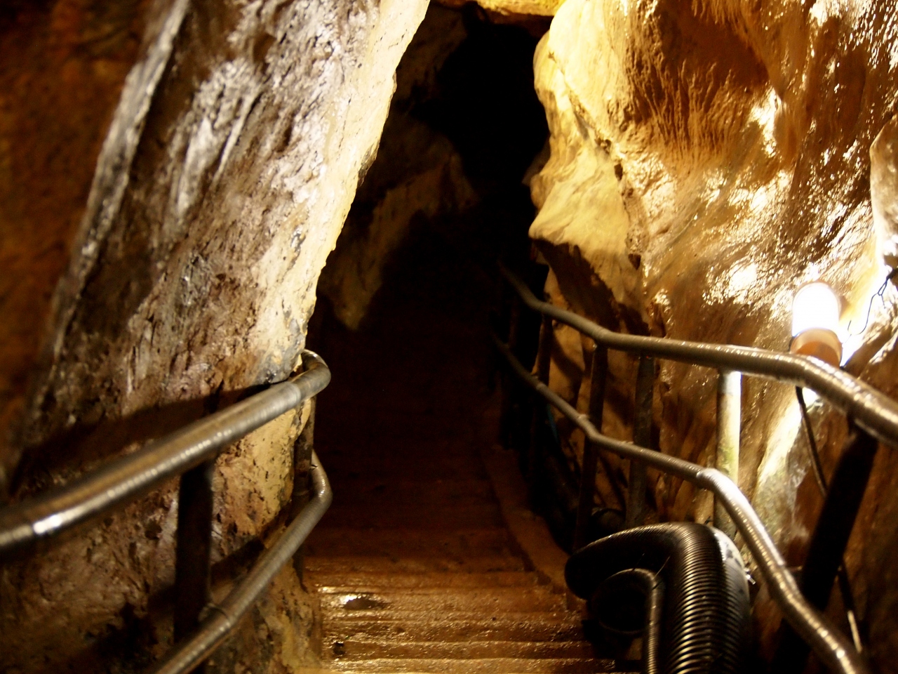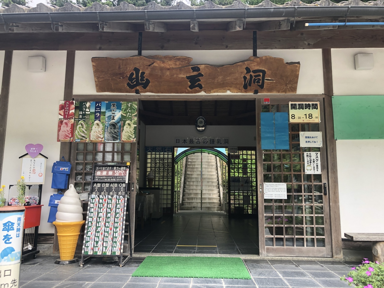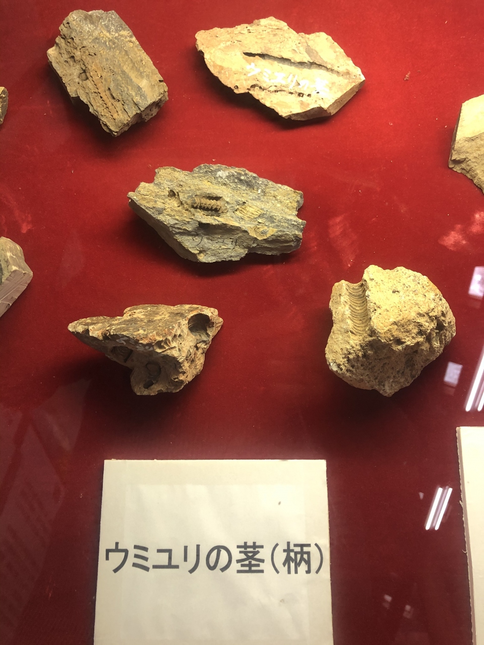 鍾乳洞特有のつらら石、石筍、石柱、またウミユリ、三葉虫の化石を見ることができる