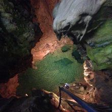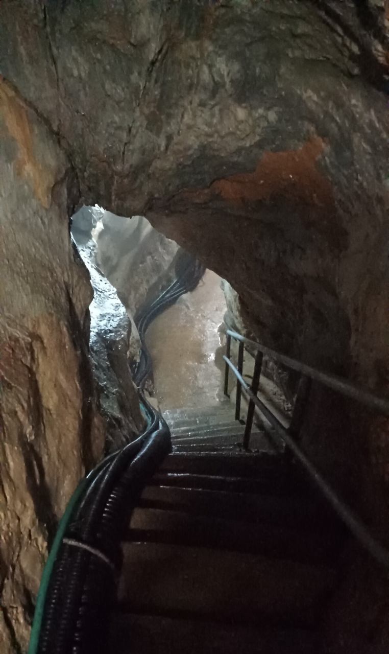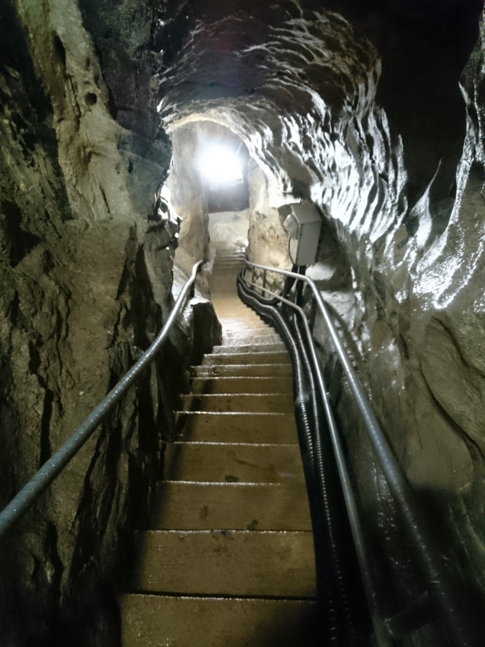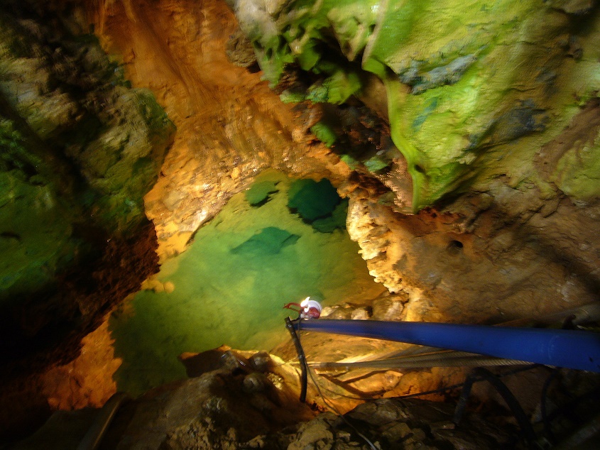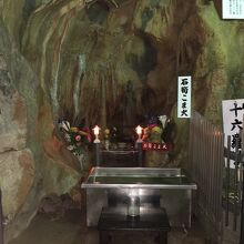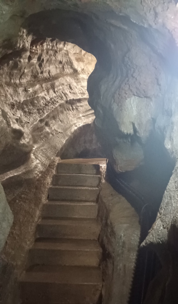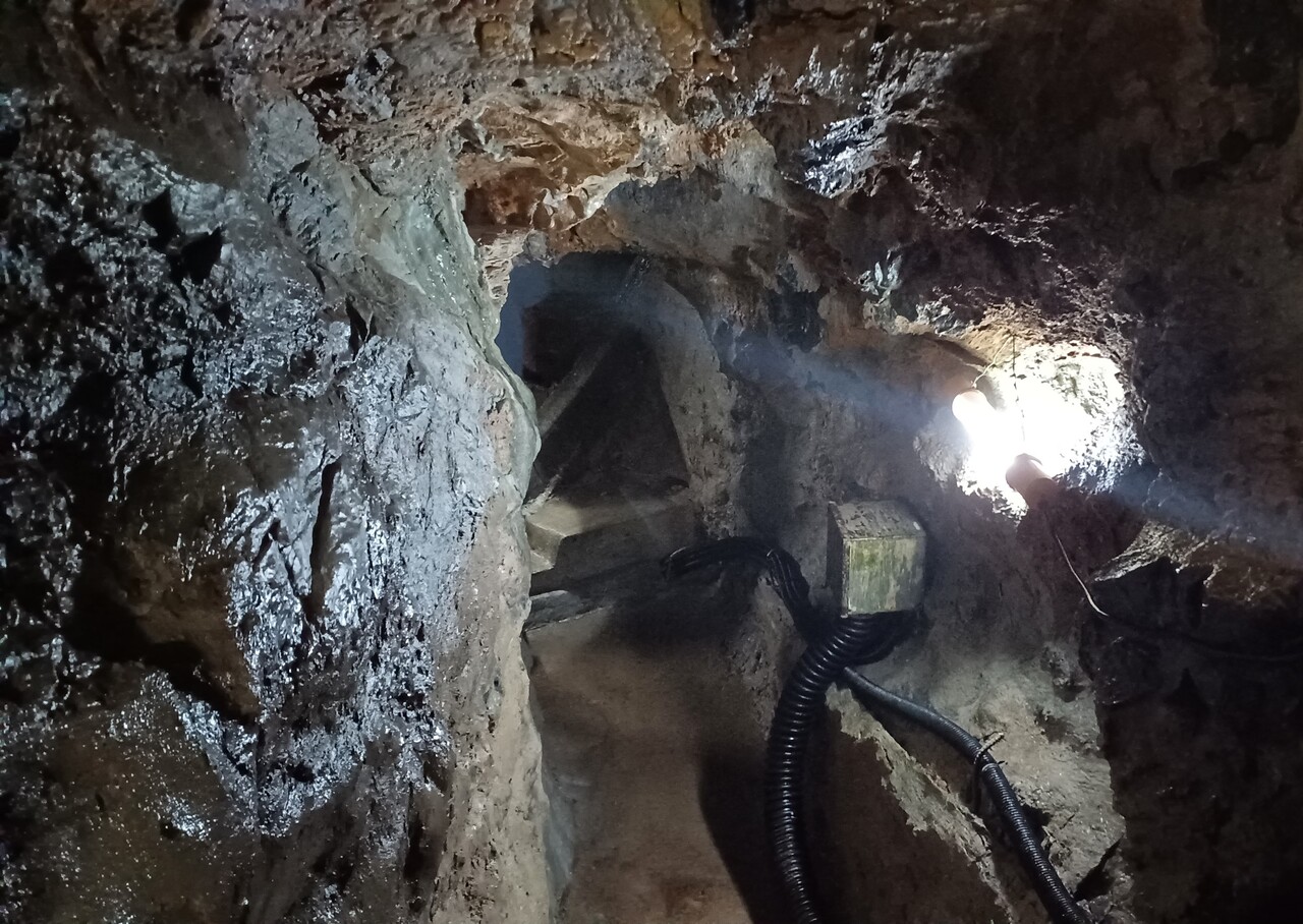 鍾乳洞特有のつらら石、石筍、石柱、またウミユリ、三葉虫の化石を見ることができる