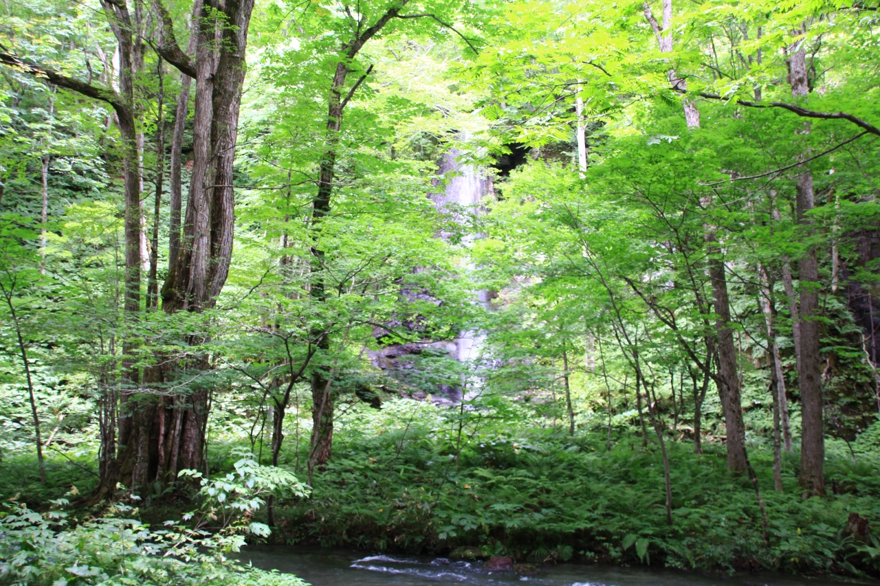 名前の通り、白い糸をひいたような滝 『白糸の滝』