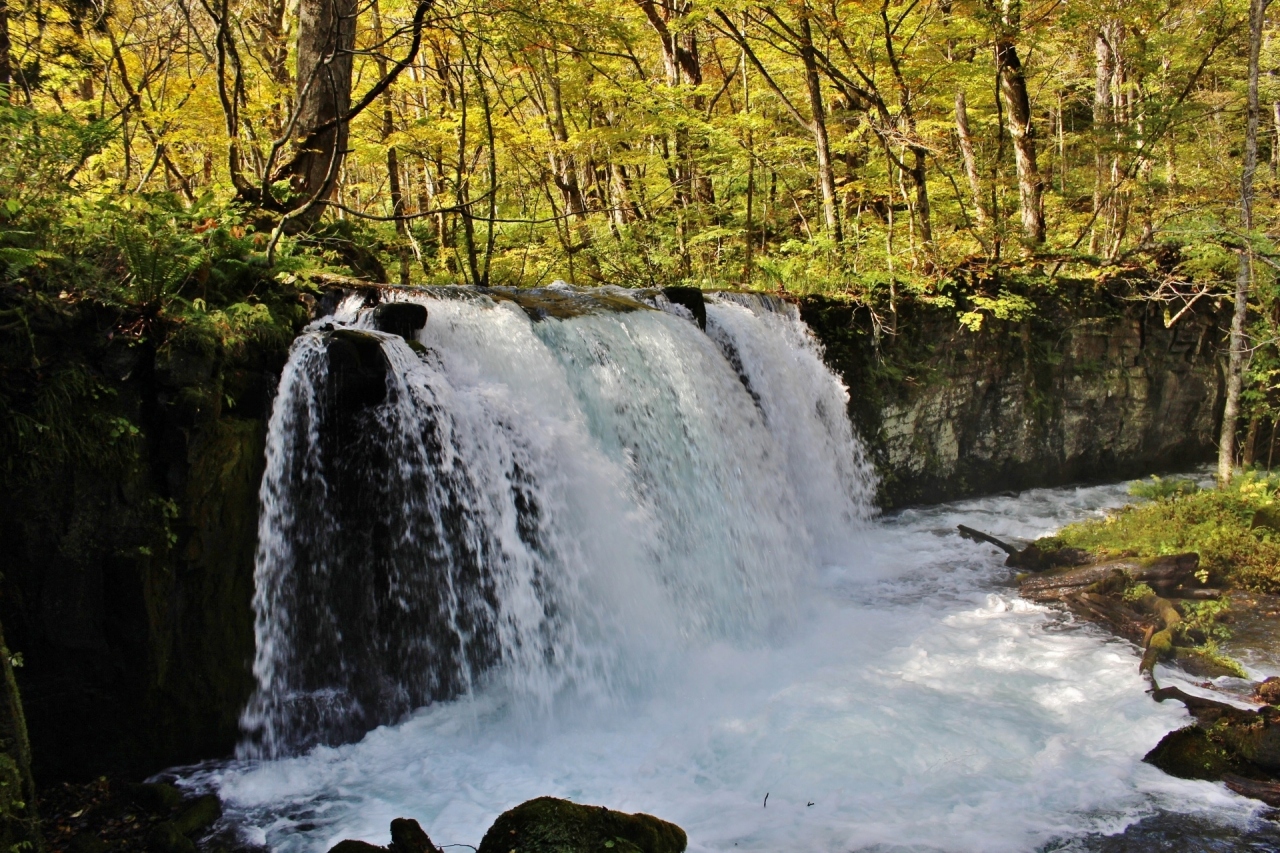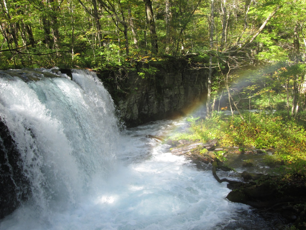 幅20メートル、高さ7メートルの見事な水量を誇るこの滝は奥入瀬の本流にかかる唯一の奥入瀬渓流最大の滝。この滝は奥入瀬を遡上して十和田湖に入ろうとする魚を拒む、魚止めの滝でした。勇壮で見事な水量は今もなお十和田湖の神秘を守る番人の様です。 【規模】落差7m