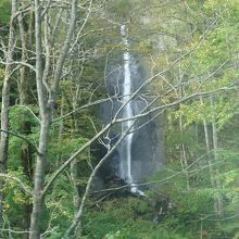 瀑布街道の滝のひとつ、白い布を垂らしたような滝