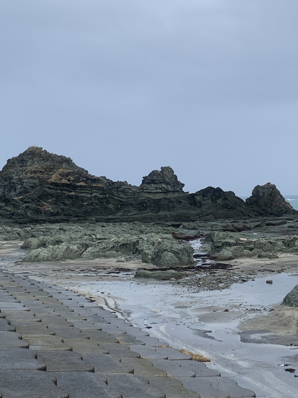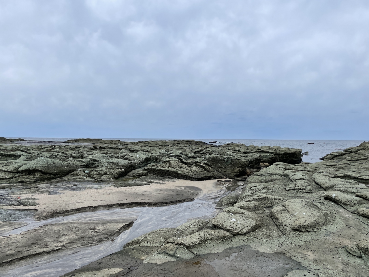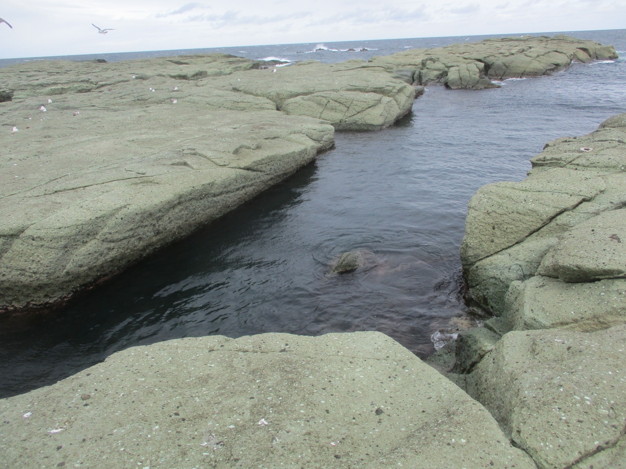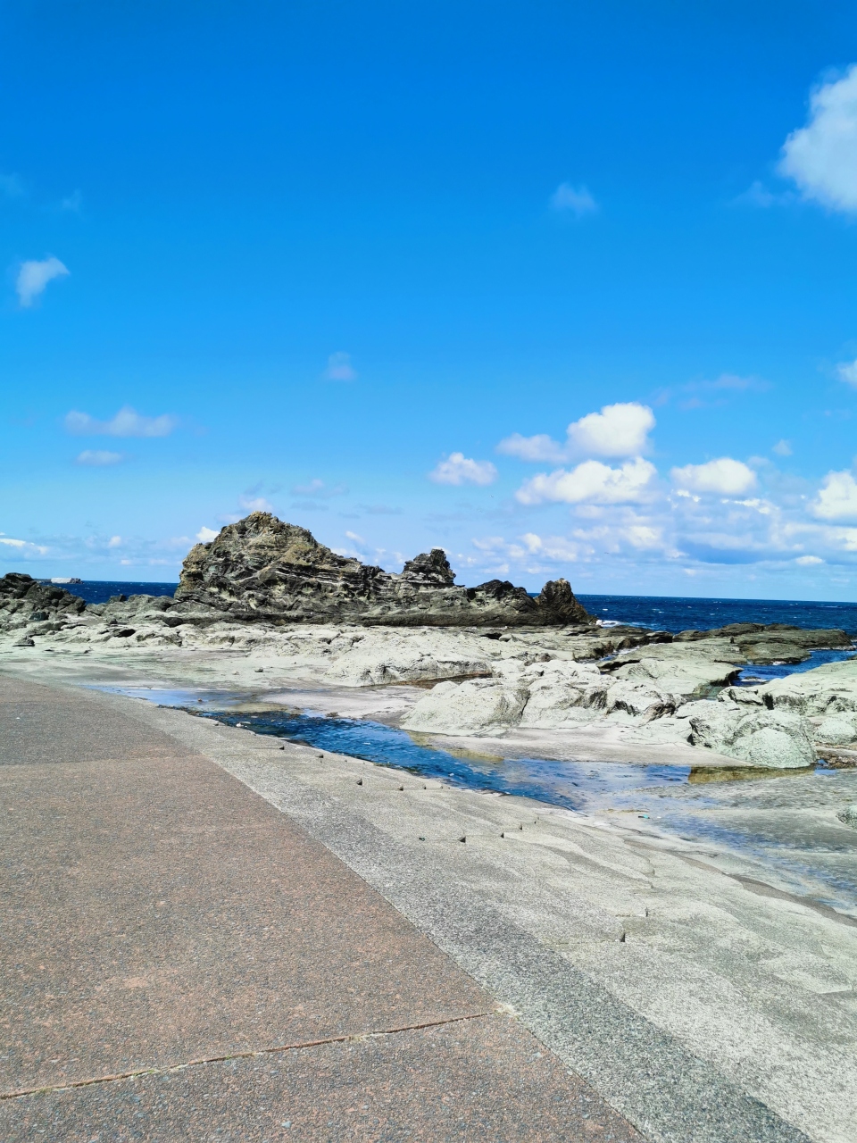 広い岩を歩いて海を見られます。奇岩を見るのも楽しい