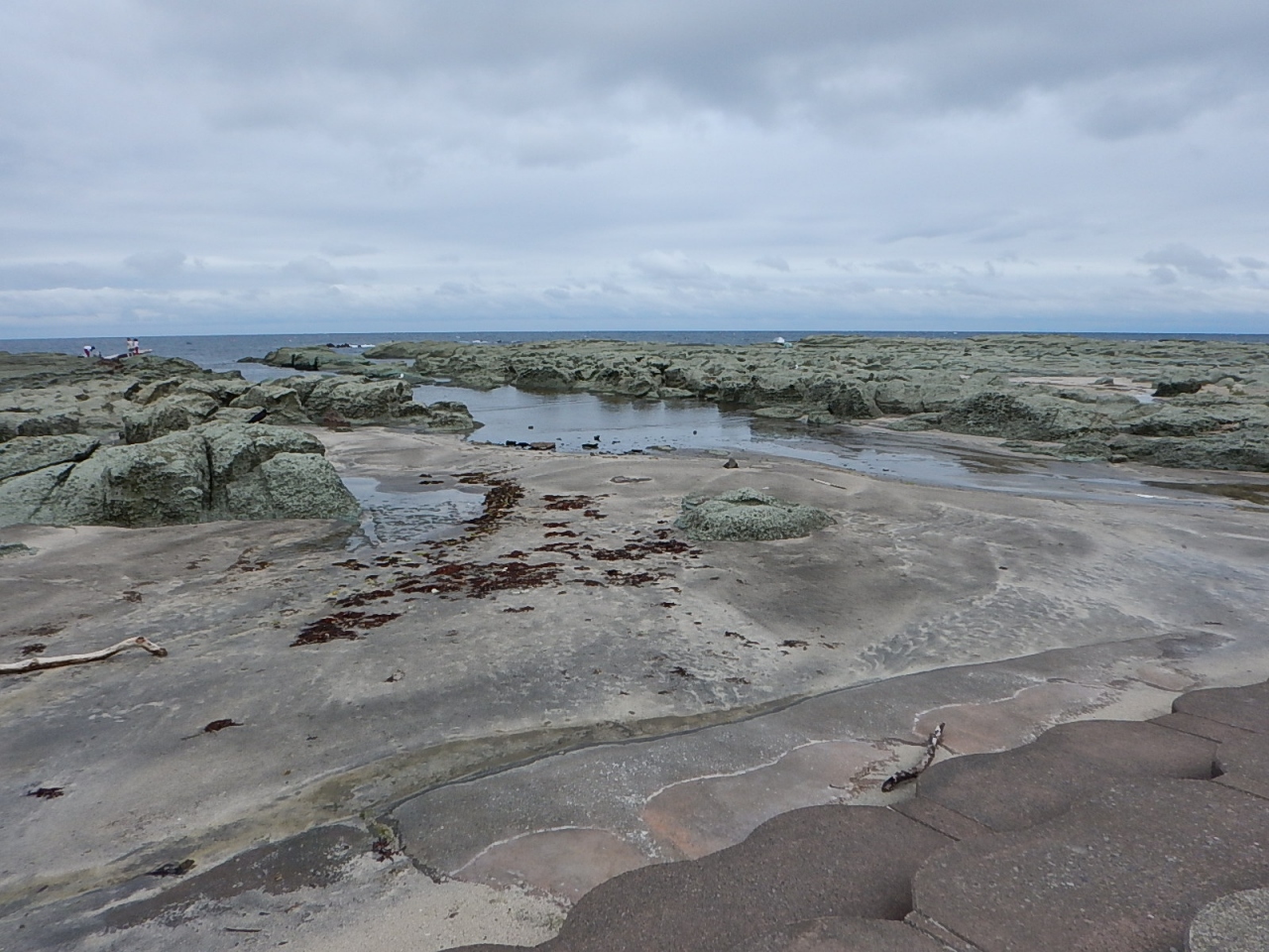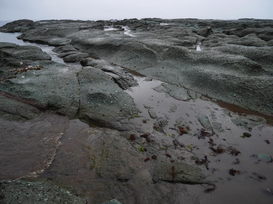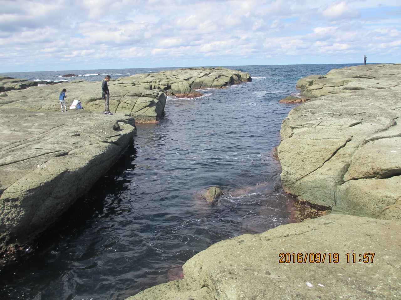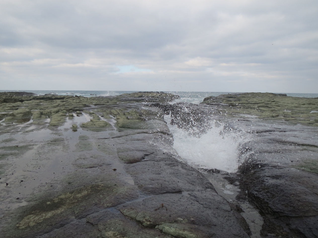 見かけより岩場で、海水が岩の間に入ってきています。