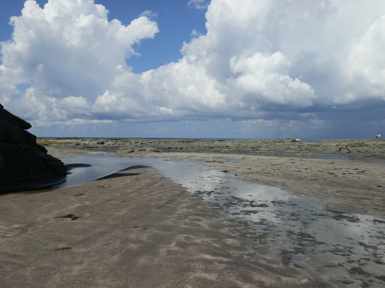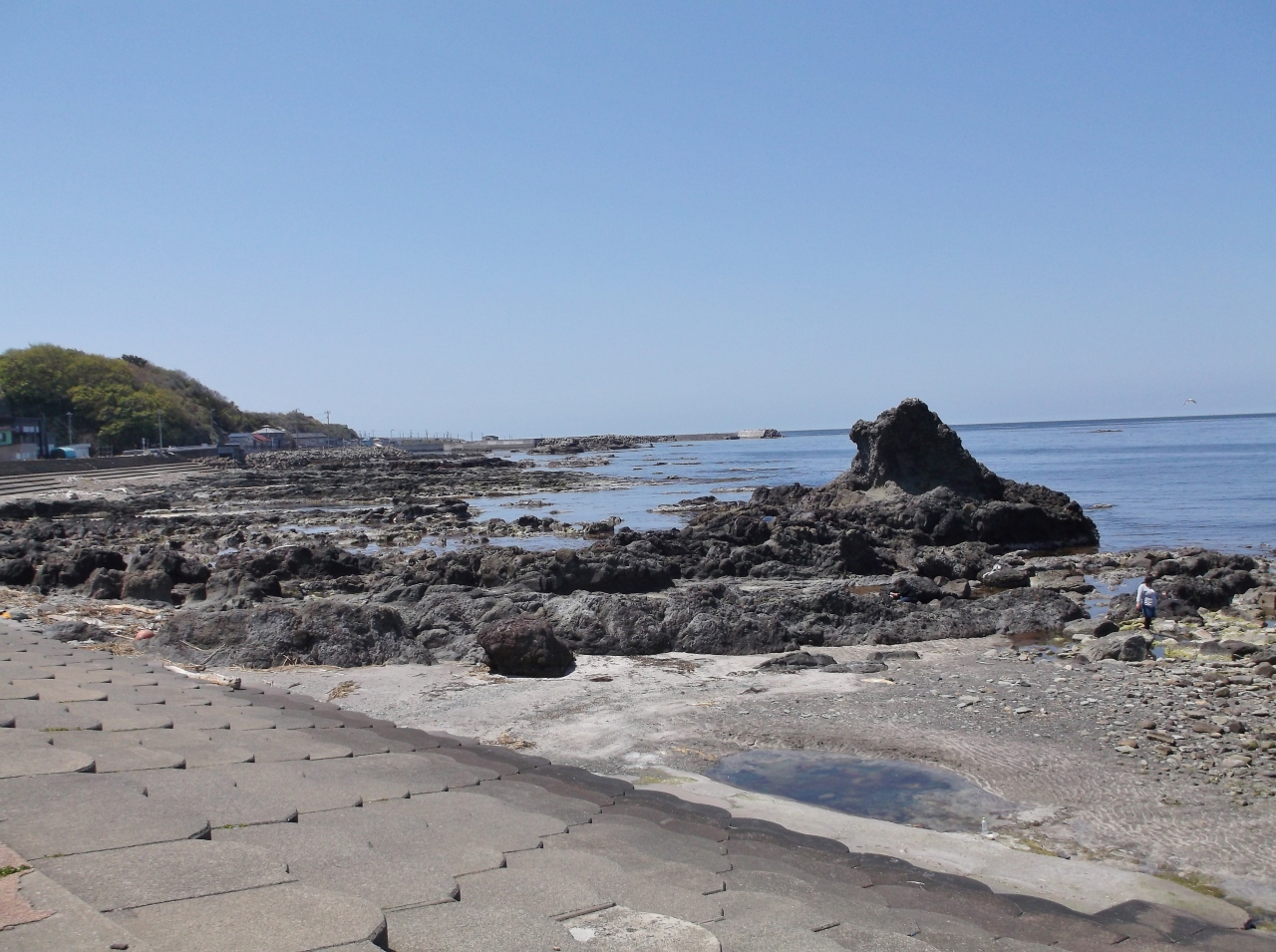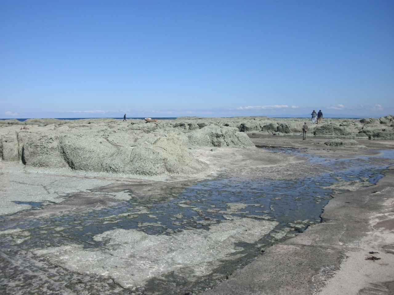 見かけより岩場で、海水が岩の間に入ってきています。