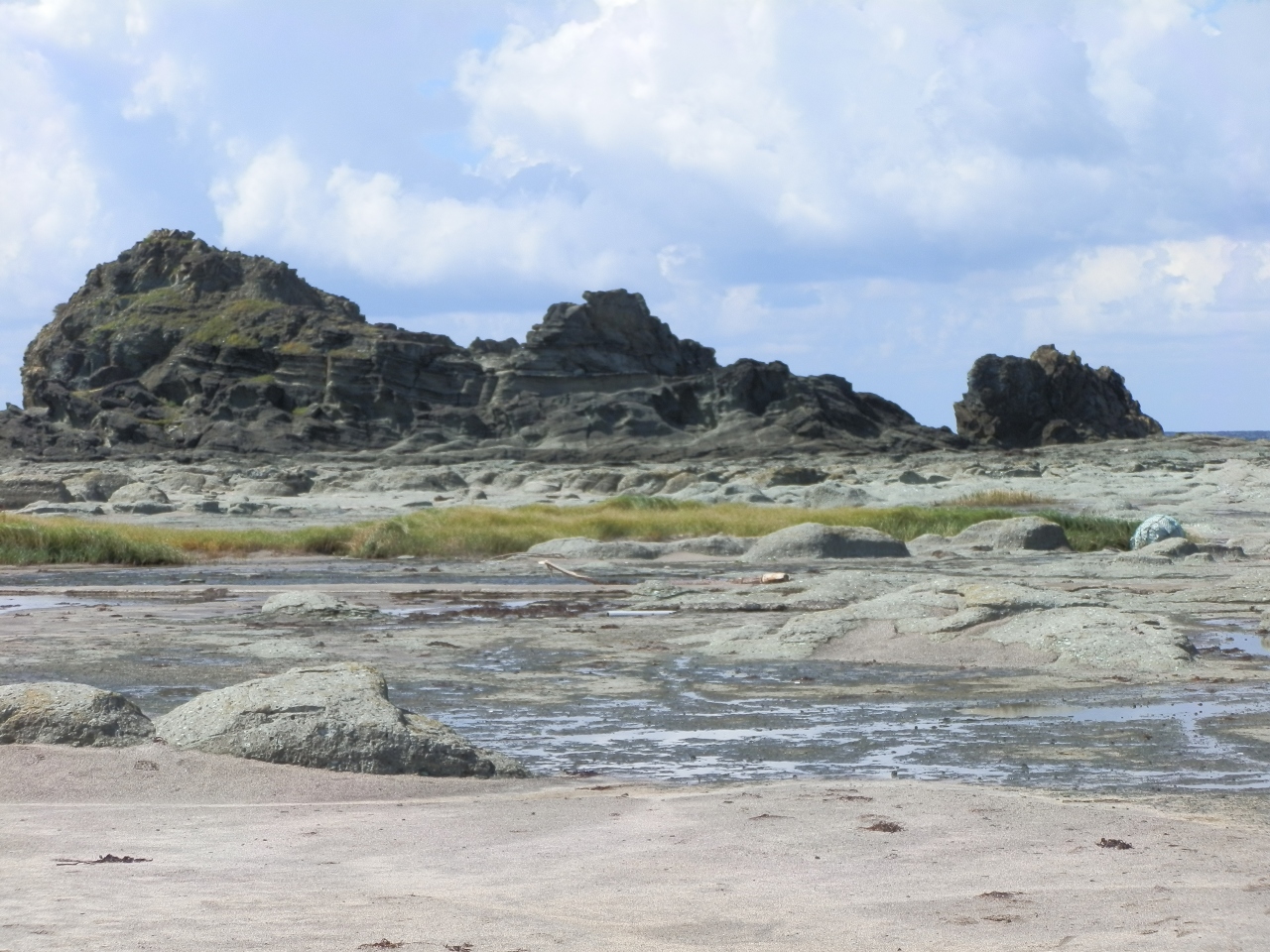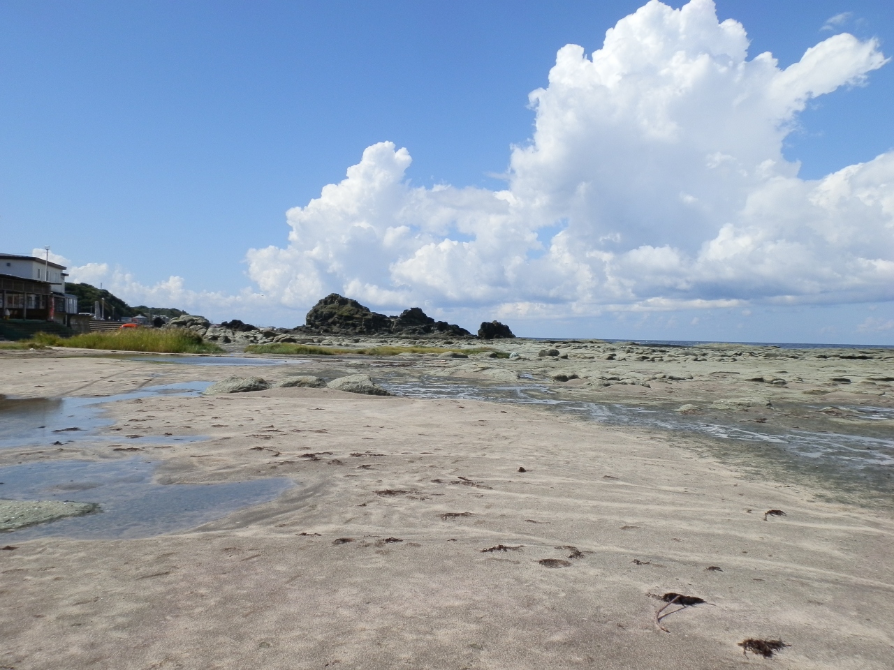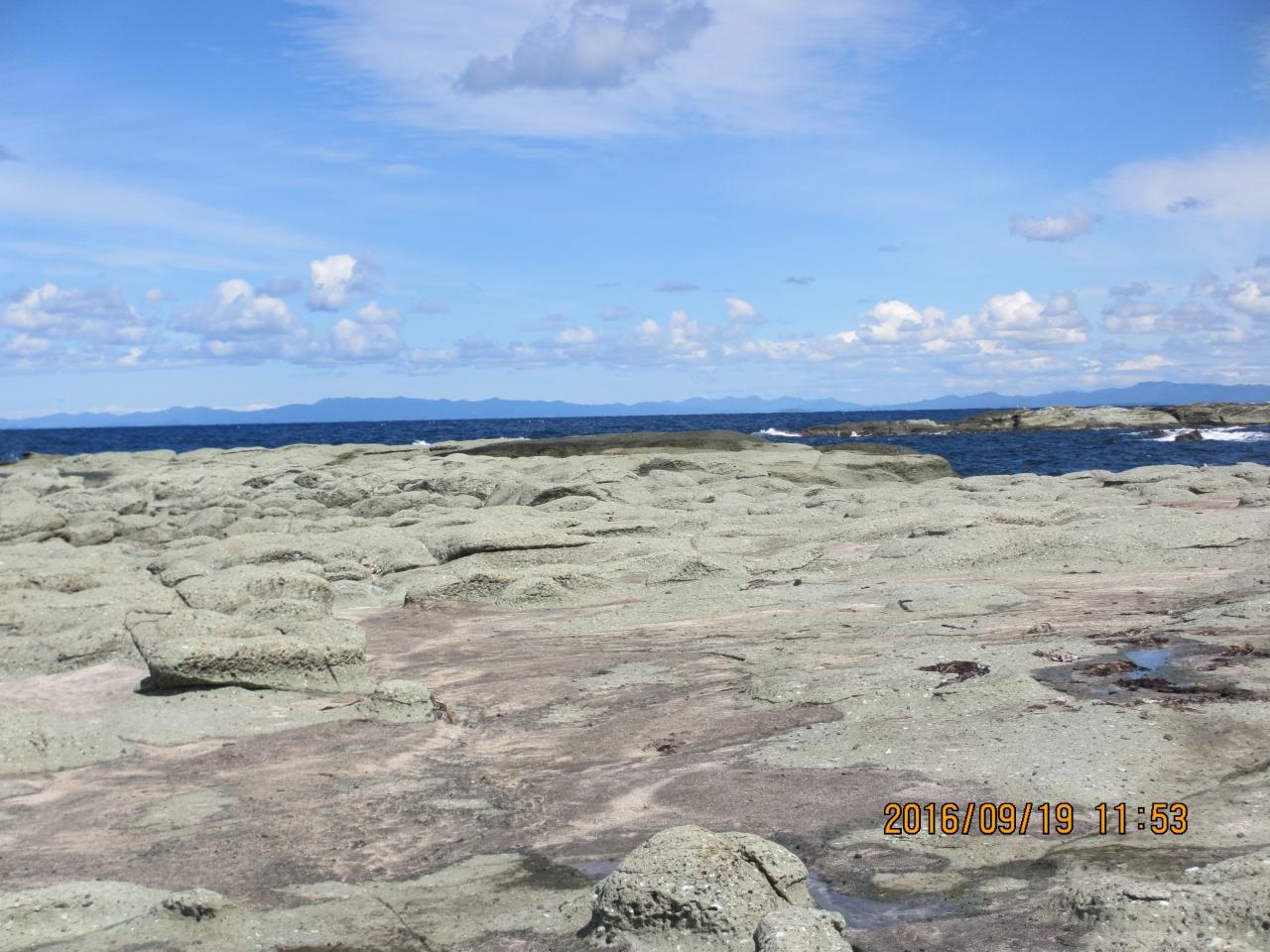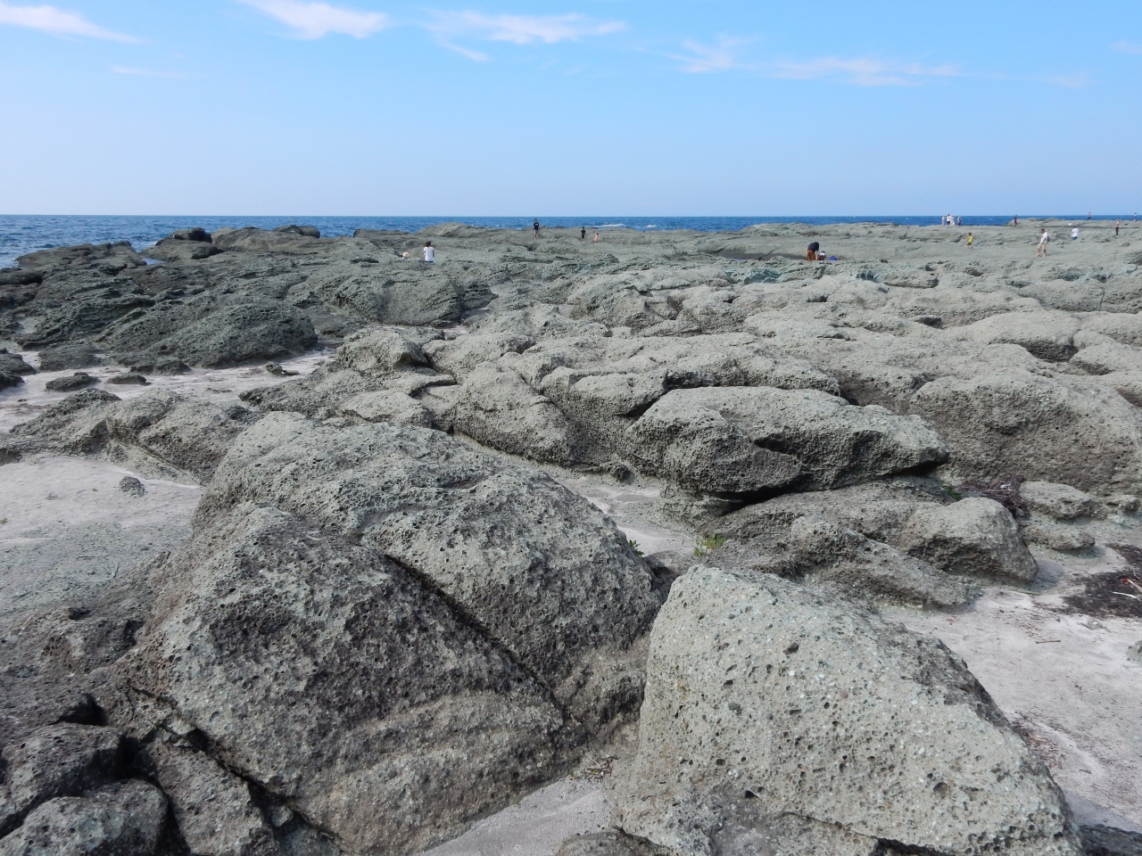 見かけより岩場で、海水が岩の間に入ってきています。