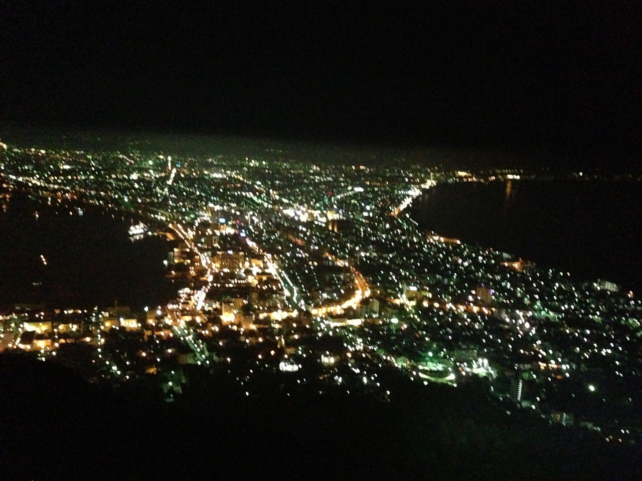 夜景で有名な函館山。暗くなくてもキレイですが、やっぱり夜景。