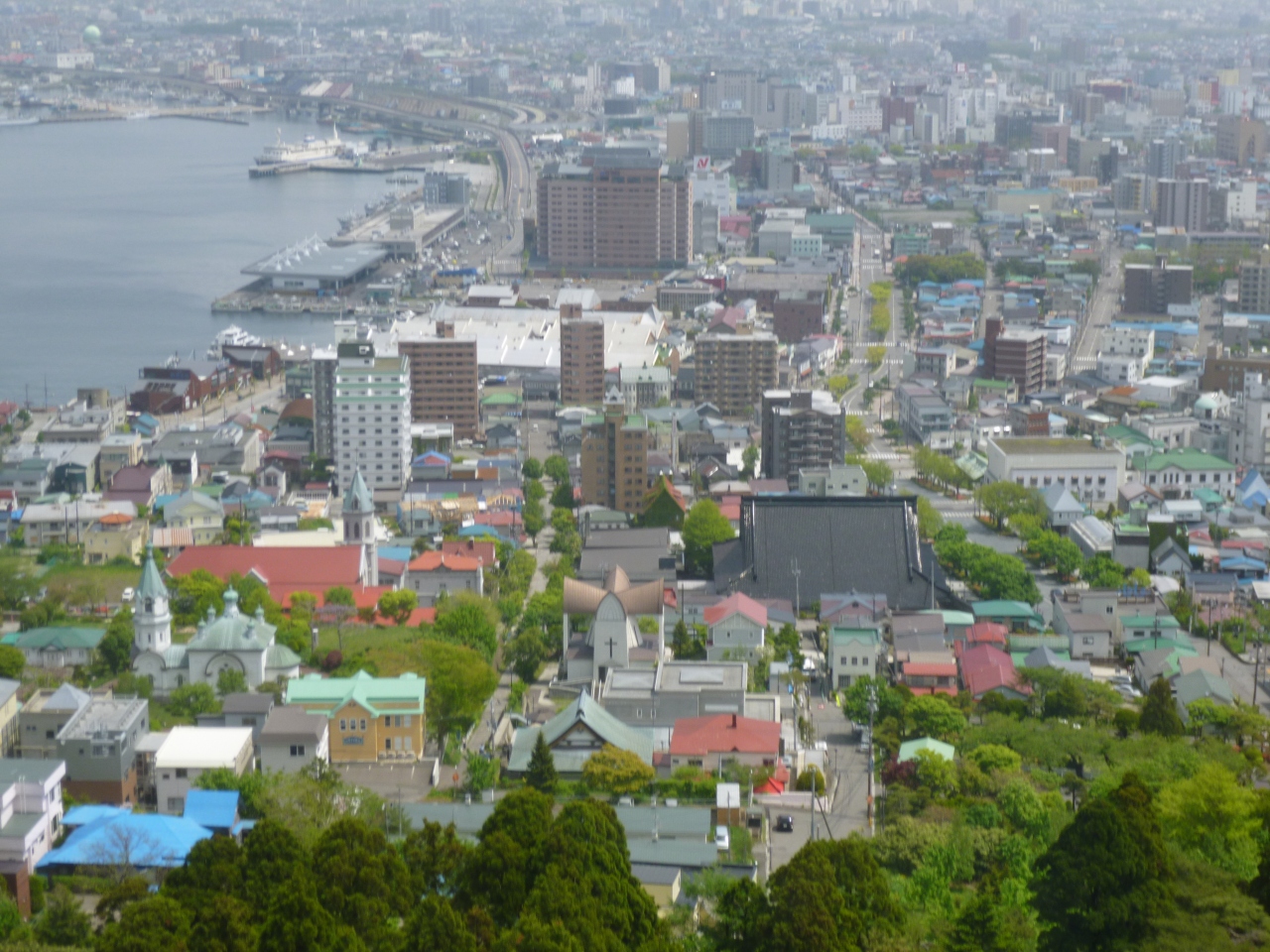 山頂の展望台からは、函館の町と海が見渡せ素晴らしい景色でした。