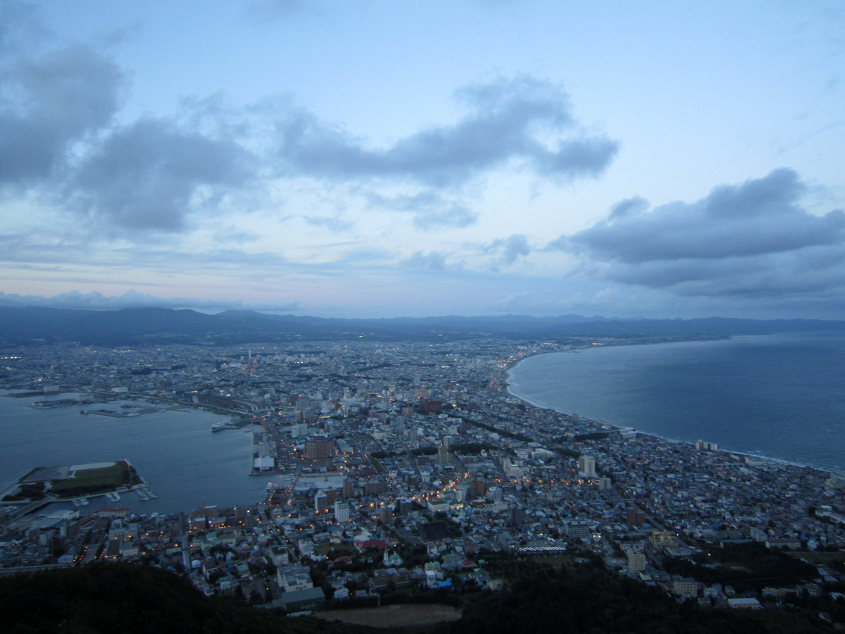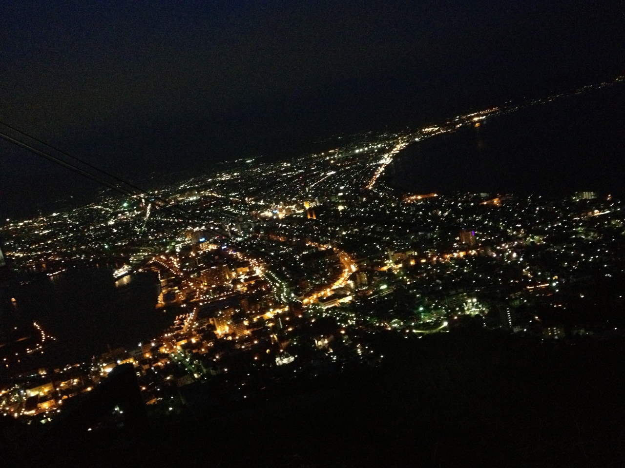 早々に切り上げ降りていくと霧が晴れ、函館の夜景を見ることができました。