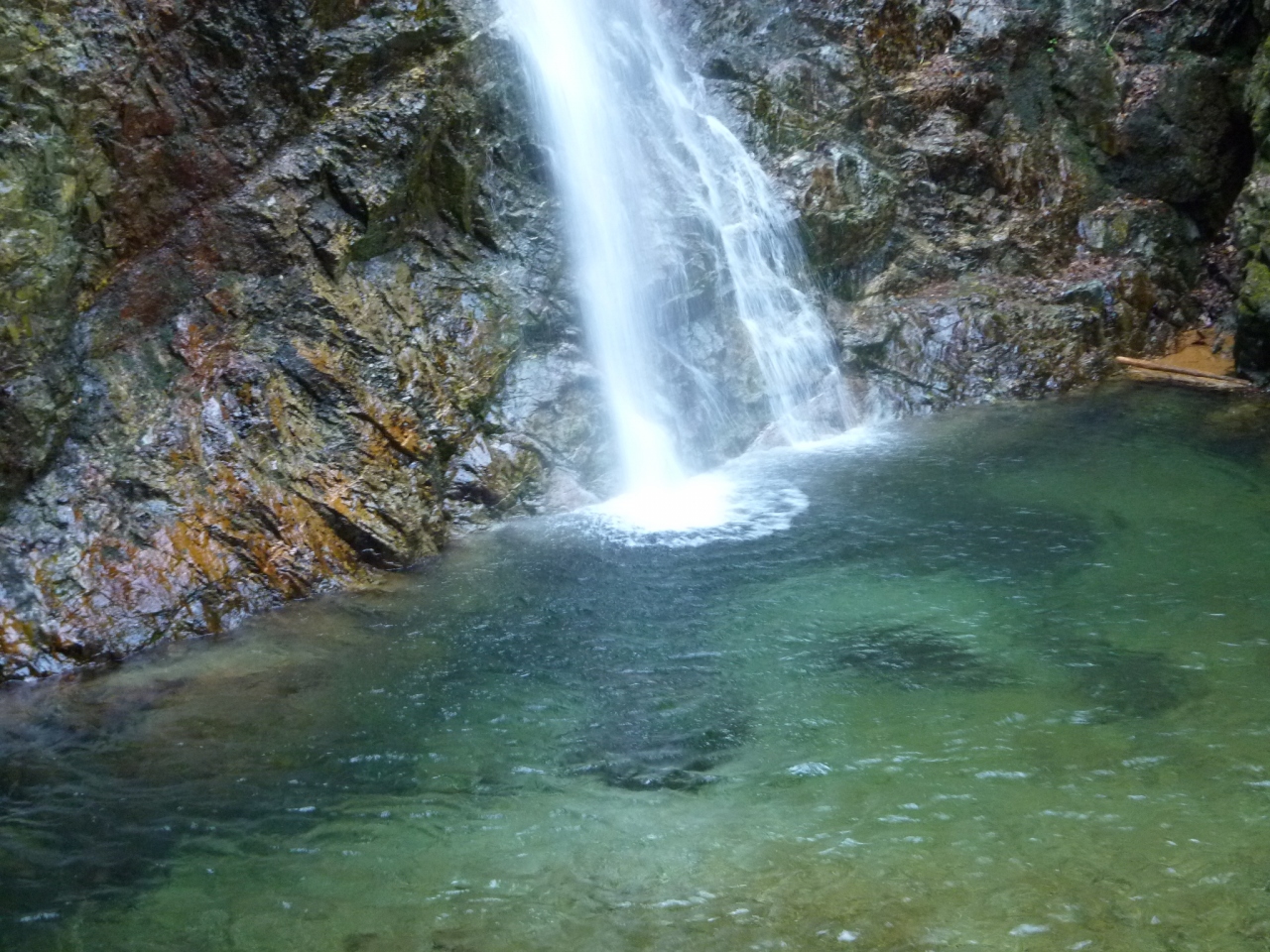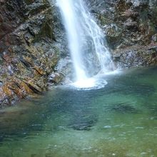 エメラルドグリーンに透き通った滝壺はとても美しく神秘的。