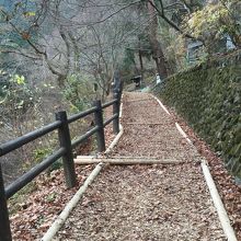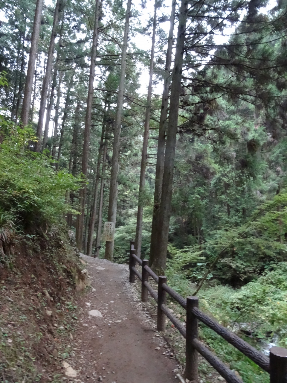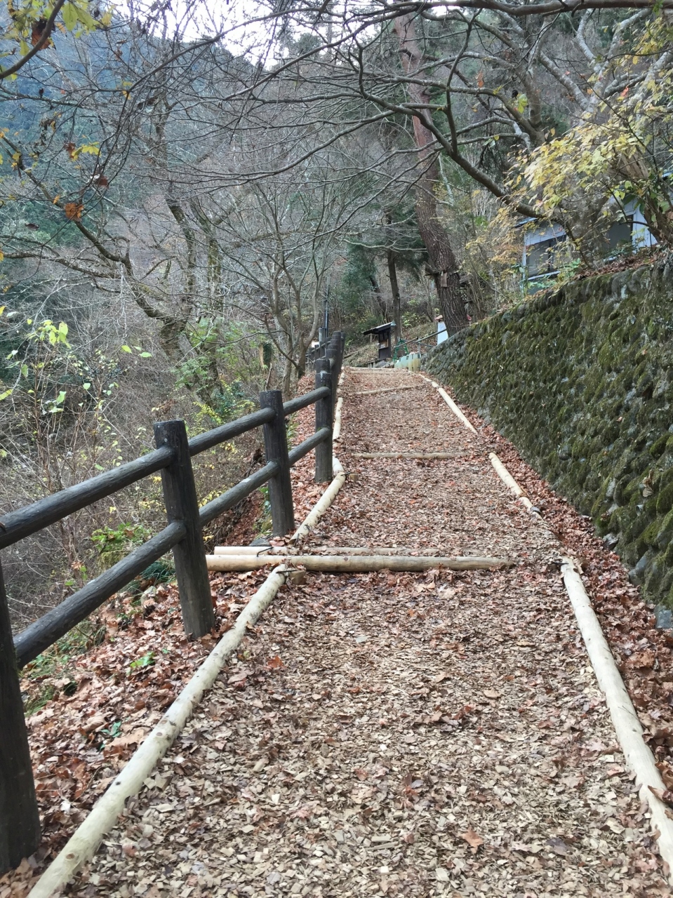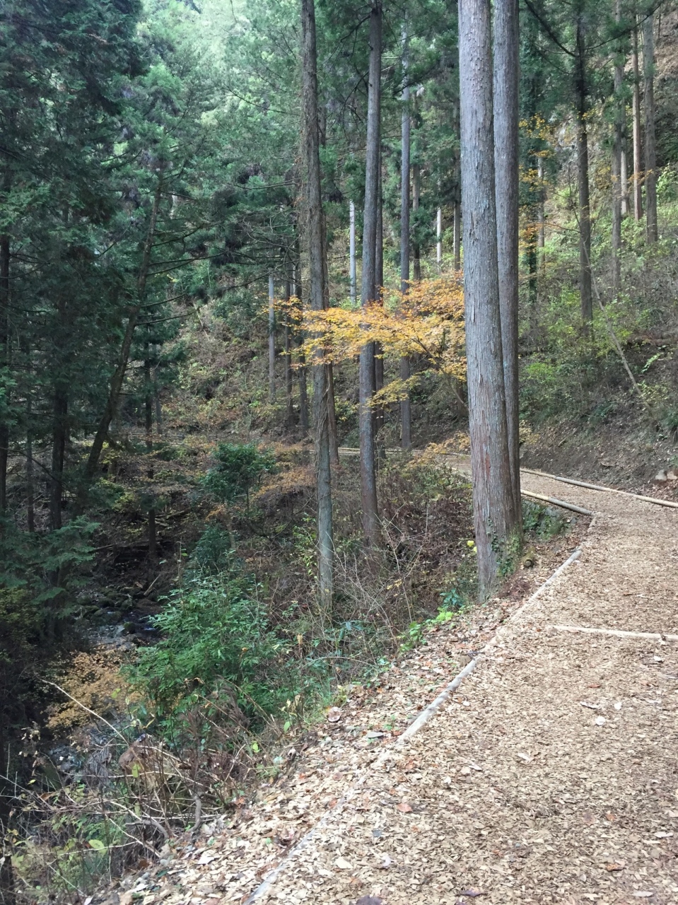 駐車場から滝まで、ゆっくり歩いても20分ほど。木のチップが敷き詰められ、滑りにくく歩きやすい良い道です。