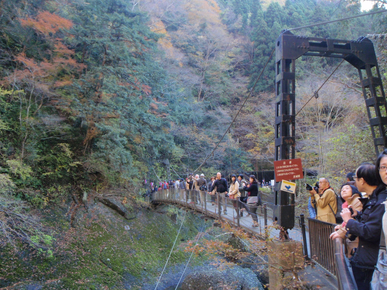 近くに吊り橋があり、滝を横から見る事も出来ましたが、すごい人で