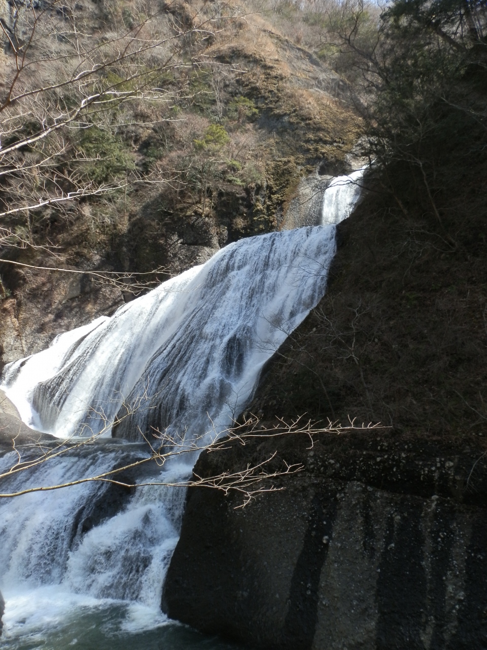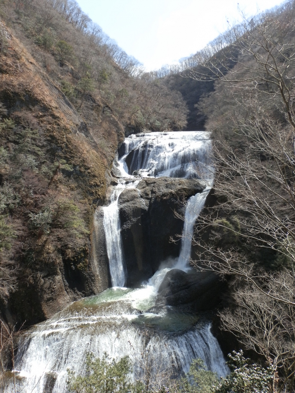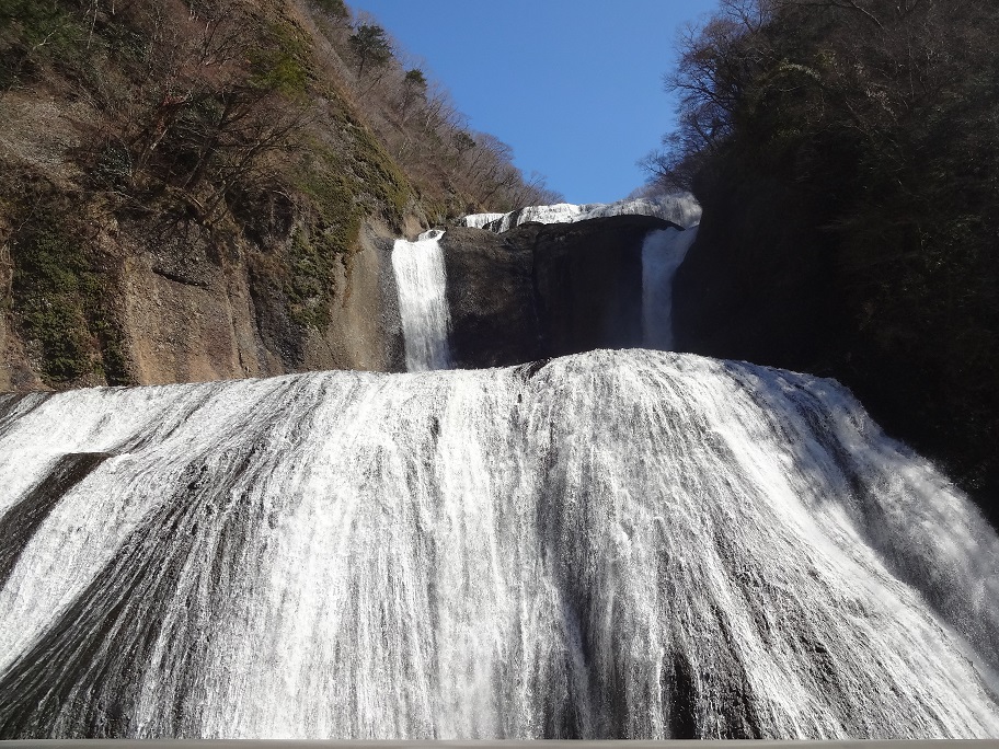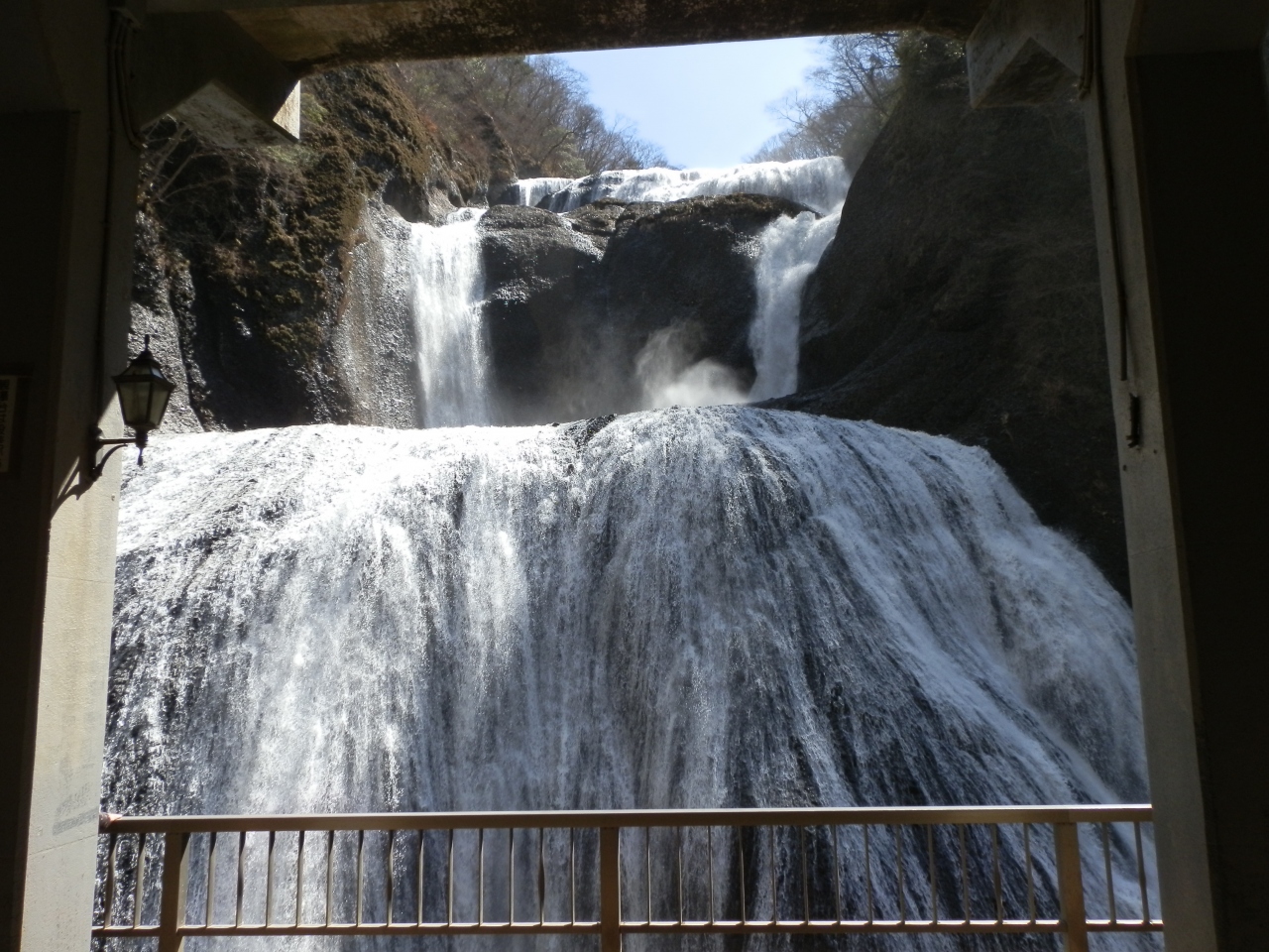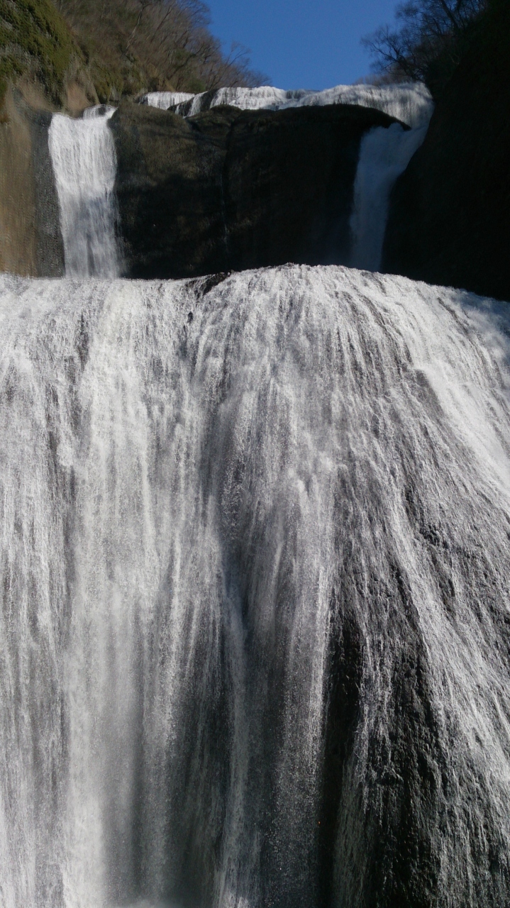 呼込みからお土産屋の駐車場に車を止めた。春浅く、車が少ない。そこが一番滝に近かった。滝を目指し坂を登った。滝の横から入った。滝の正面に出ると、音と水しぶきが凄かった。やはり、日本三名瀑のひとつだ。大きな滝である。高さが120m幅が73mその大きさに圧倒され感動した、本当に来て見て良かった。  閉じる
