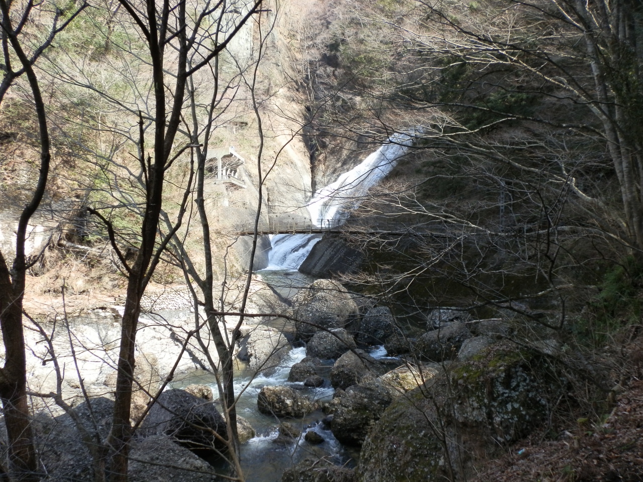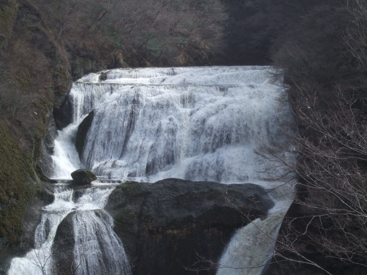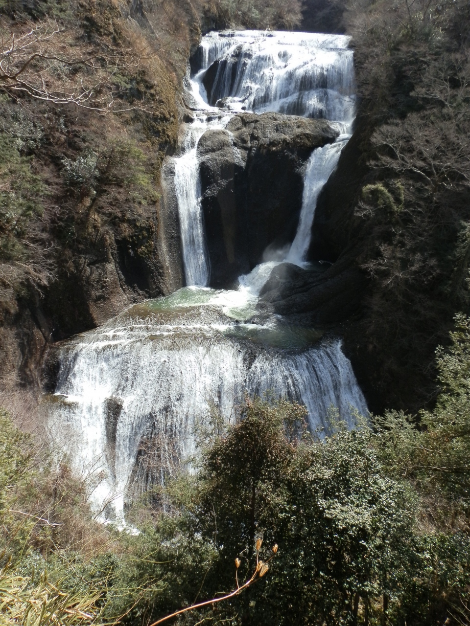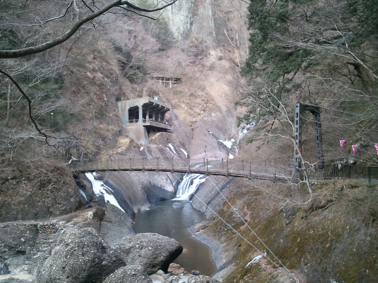 呼込みからお土産屋の駐車場に車を止めた。春浅く、車が少ない。そこが一番滝に近かった。滝を目指し坂を登った。滝の横から入った。滝の正面に出ると、音と水しぶきが凄かった。やはり、日本三名瀑のひとつだ。大きな滝である。高さが120m幅が73mその大きさに圧倒され感動した、本当に来て見て良かった。  閉じる