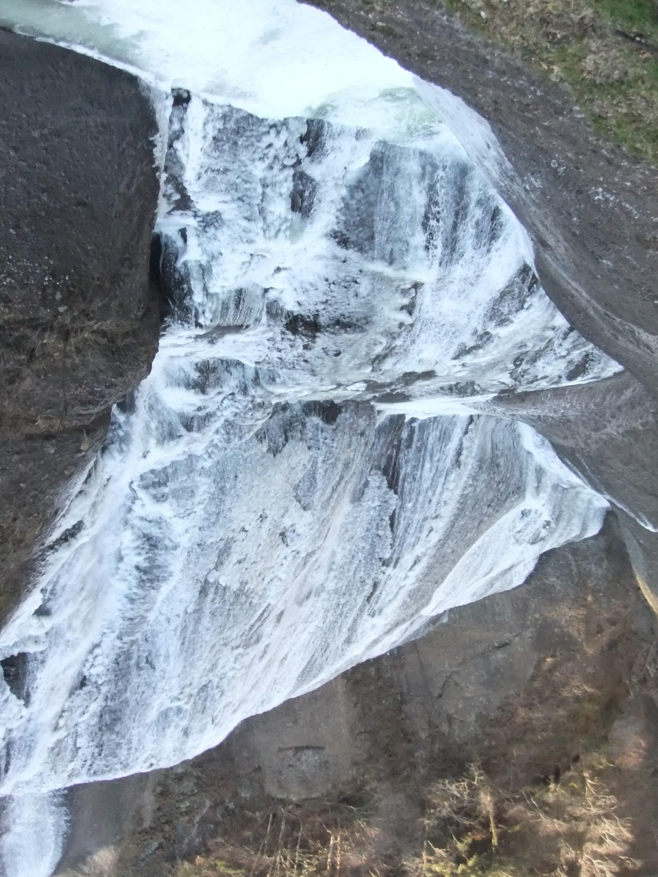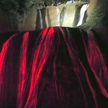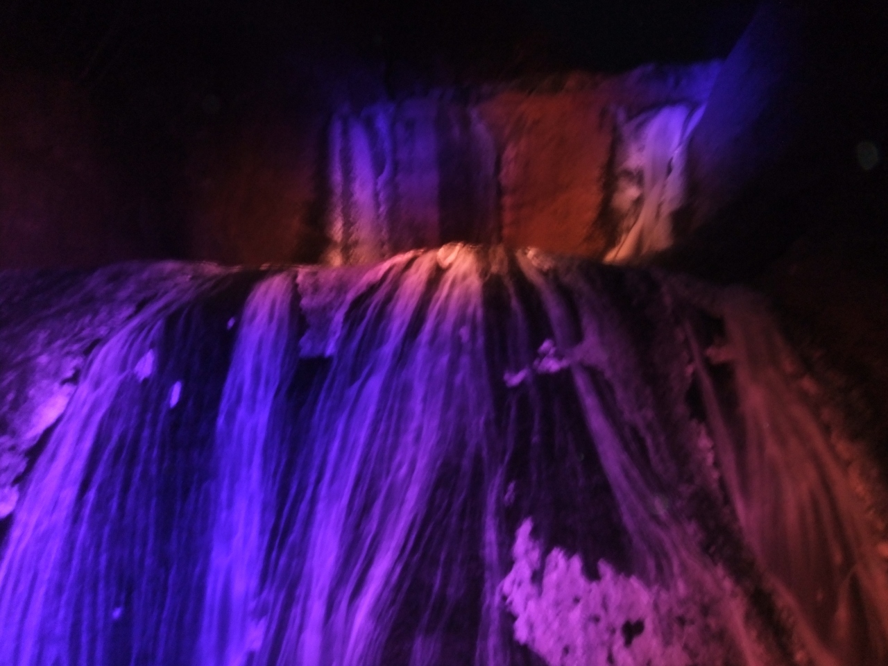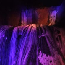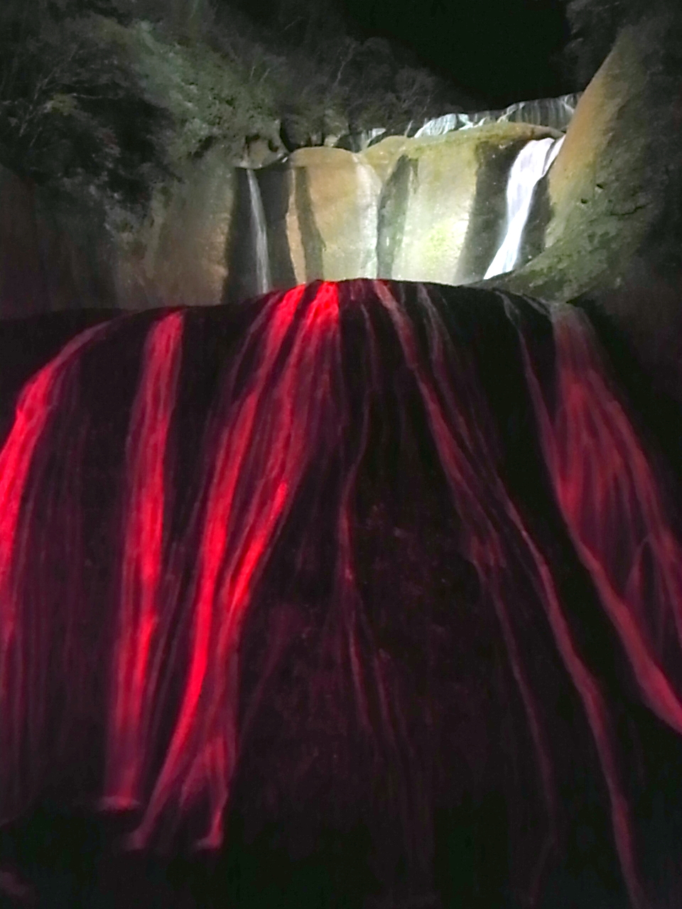残念ながら晴天続きのせいか水量が少なく迫力に欠けましたが、緑や青に光る滝は美しく、赤く光る時は恐ろしく見える、貴重な体験ができました。  閉じる