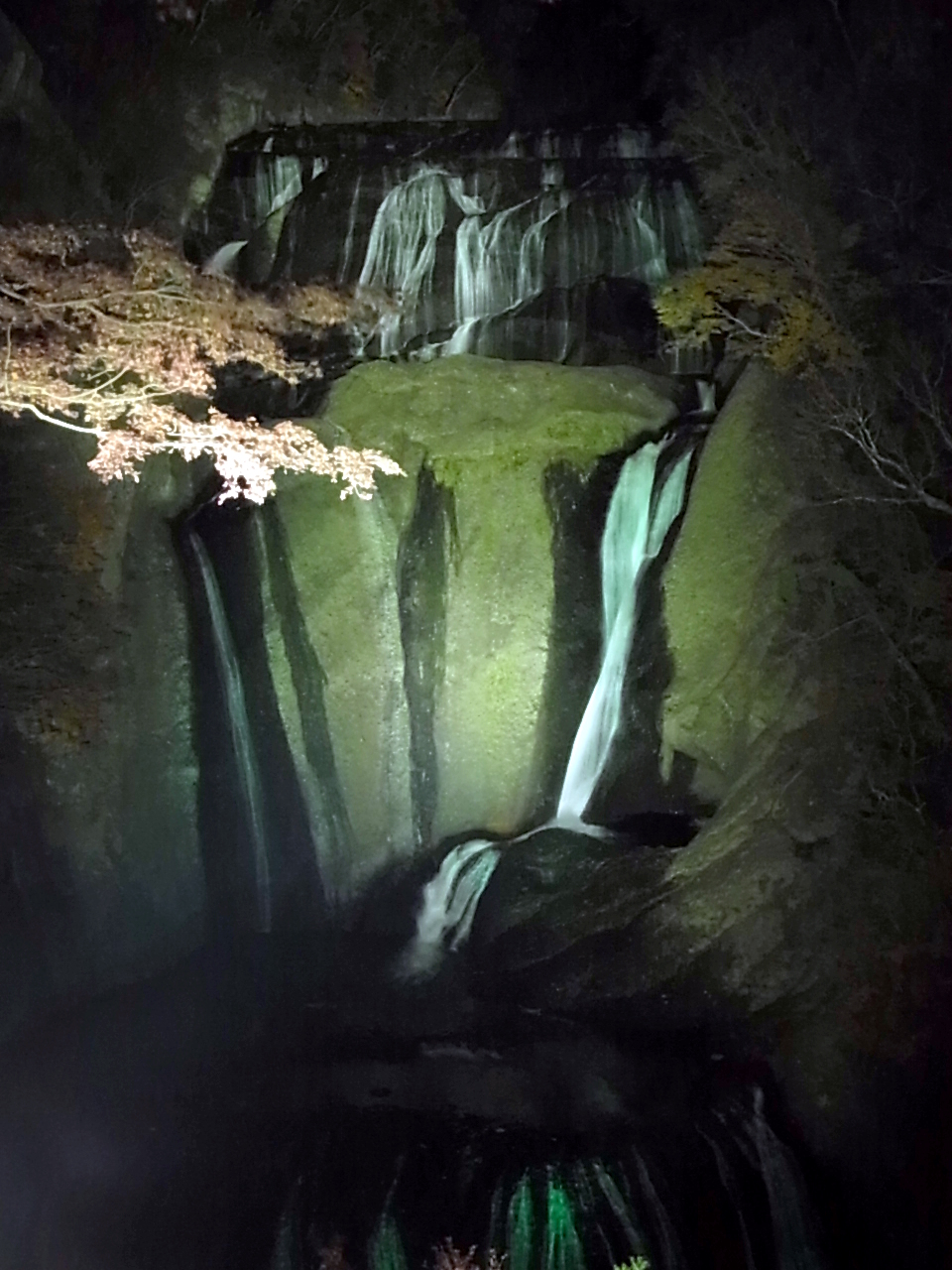 紅葉シーズンは土日曜日は日没後〜滝ライトアップがあります。