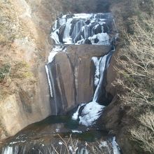12月中旬の滝は水量は少なく、よく見ると少し凍っているところがあった。これから真冬にかけて凍結していくのだろう。