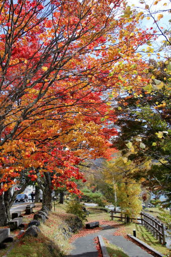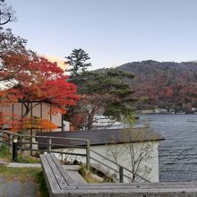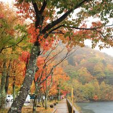 遊歩道があるので男体山や湖の紅葉景色を楽しみながらゆっくり散歩できます。