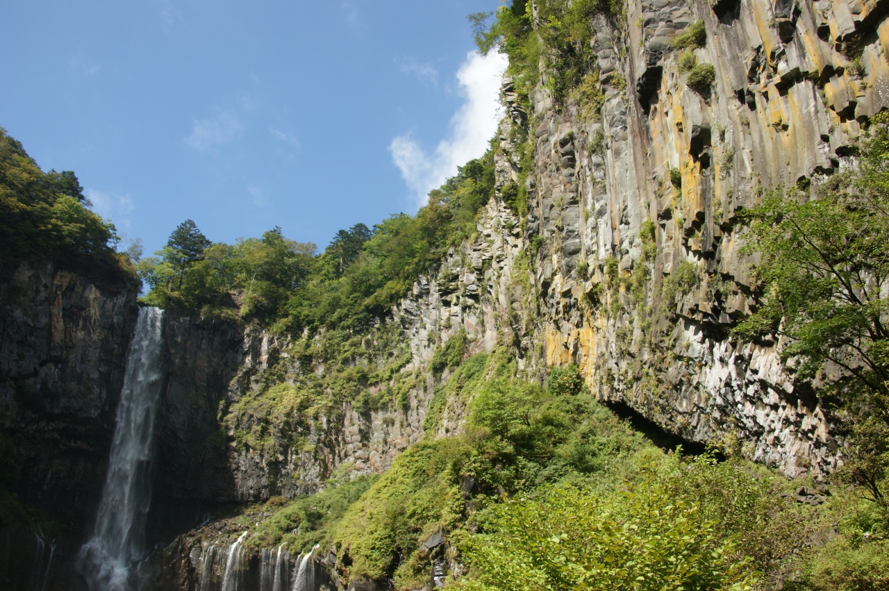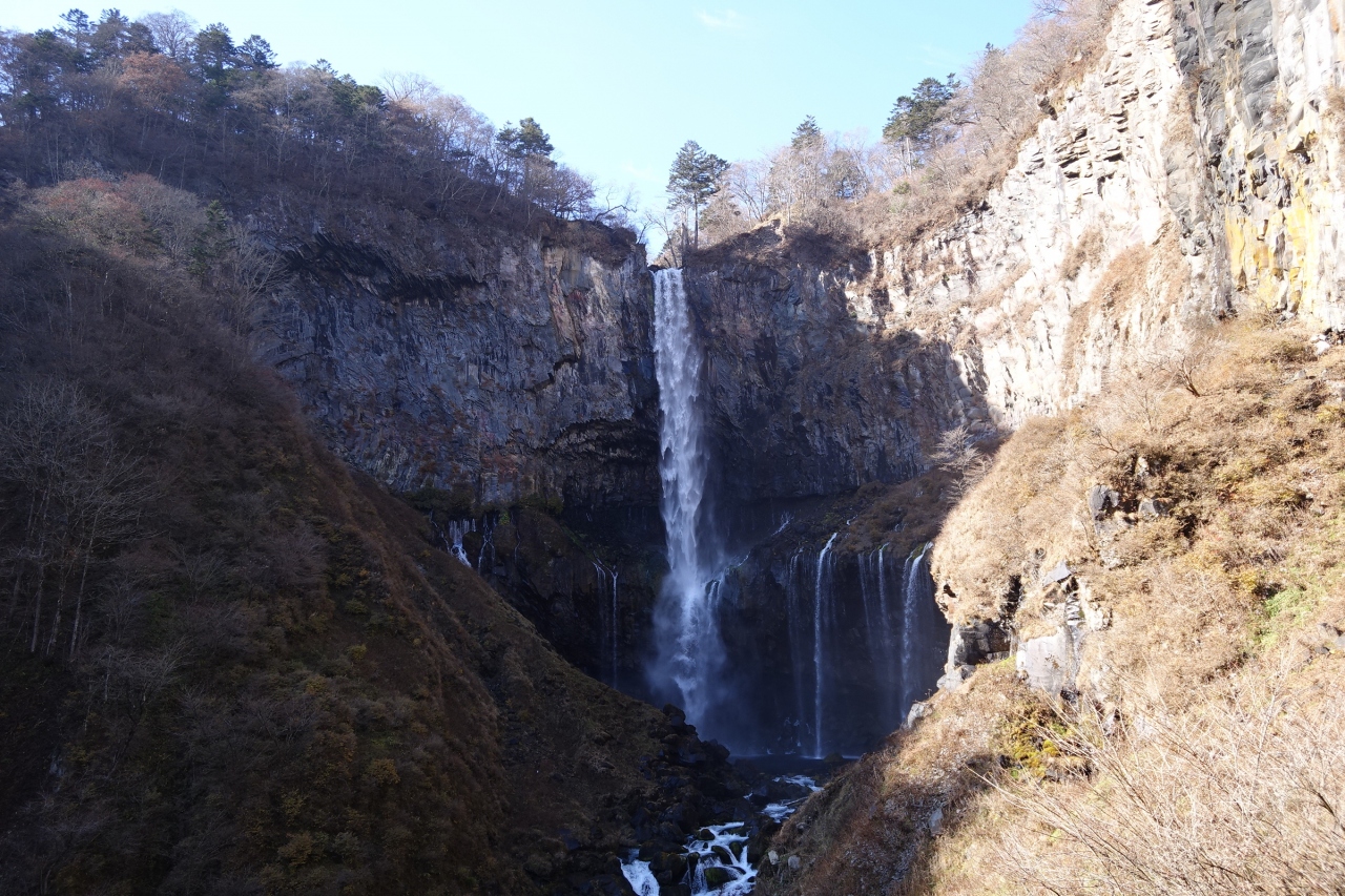 日本三大名瀑の一つ。中禅寺湖の流出口にある。観瀑台までエレベーターが通じ、97メートルの岩壁を一気に落ちる様がみられる。 【規模】落差97m/巾10m