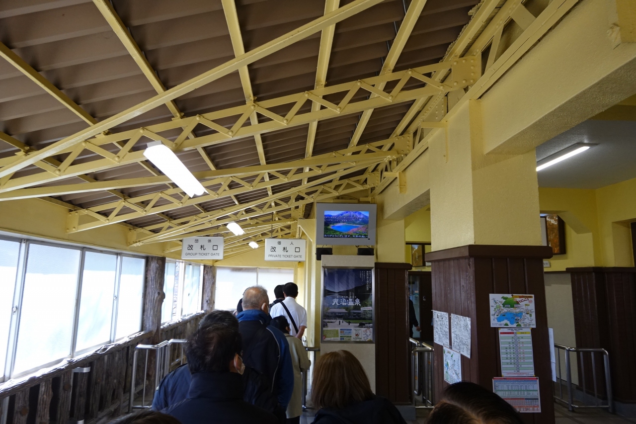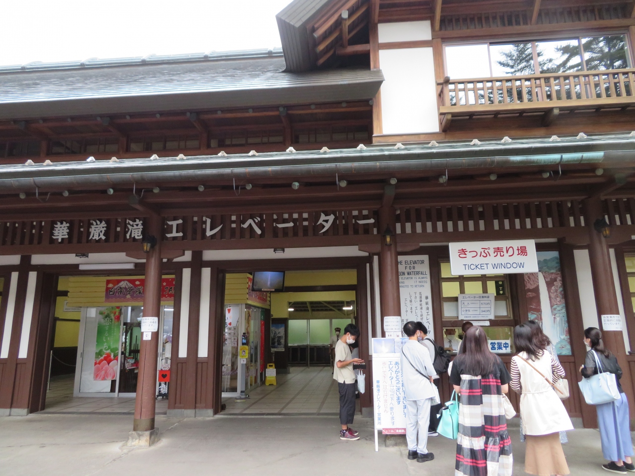 また、華厳第二駐車場の近くには華厳滝エレベーターがあり、岩盤の中を100m下って観瀑台に行くことが出来ます。こちらは滝を正面から間近に見ることができます。水しぶきこそかかりませんが、近いのでかなりの迫力を体感できます。片道1分で往復570円ですが、それだけの価値はあります。修学旅行の小学生が大騒ぎで、そこだけがちょっと、ね。