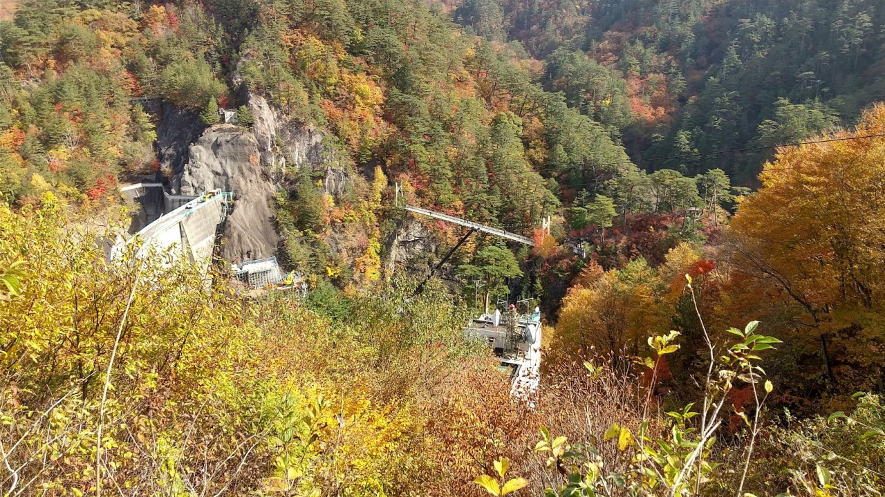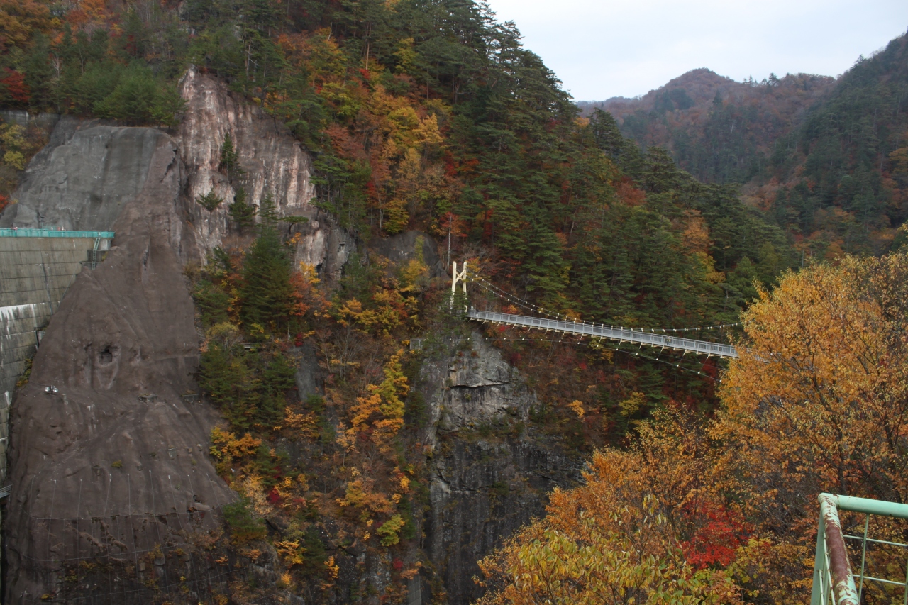 峡谷、吊り橋、ダムの3点セットは奥鬼怒随一の景勝地