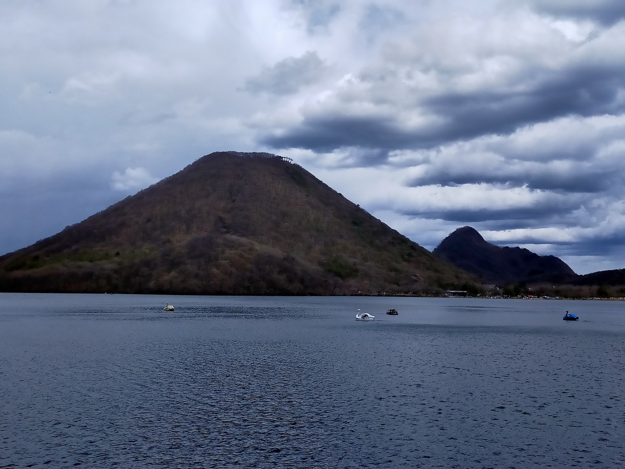 県立榛名公園と対岸に位置する竹久夢二歌碑辺りの2ケ所で湖畔散策