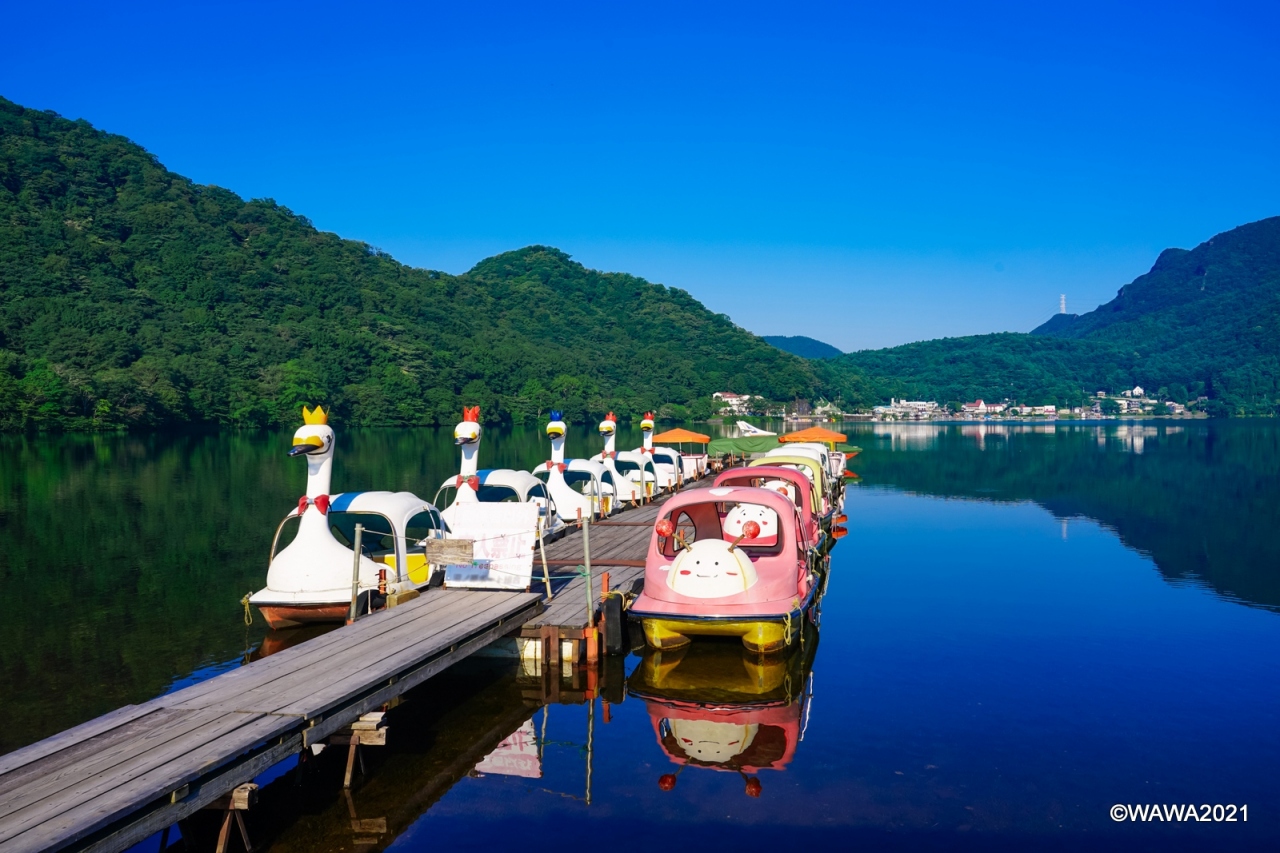 榛名火山の活動によって生まれた湖。周囲4.8km、標高1100m、美しい榛名の山並みに囲まれている。榛名湖の一帯は「県立榛名公園」となっており四季を通じてたくさんの観光客で賑わう。サイクリングや馬車に乗っての湖畔めぐり、ボートやキャンプ、冬は結氷、ワカサギ釣りなどが楽しめる。