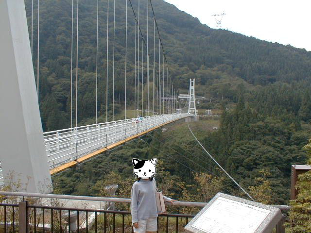 高さは90m。長さは歩行者専用吊り橋としては日本有数の全長225m。