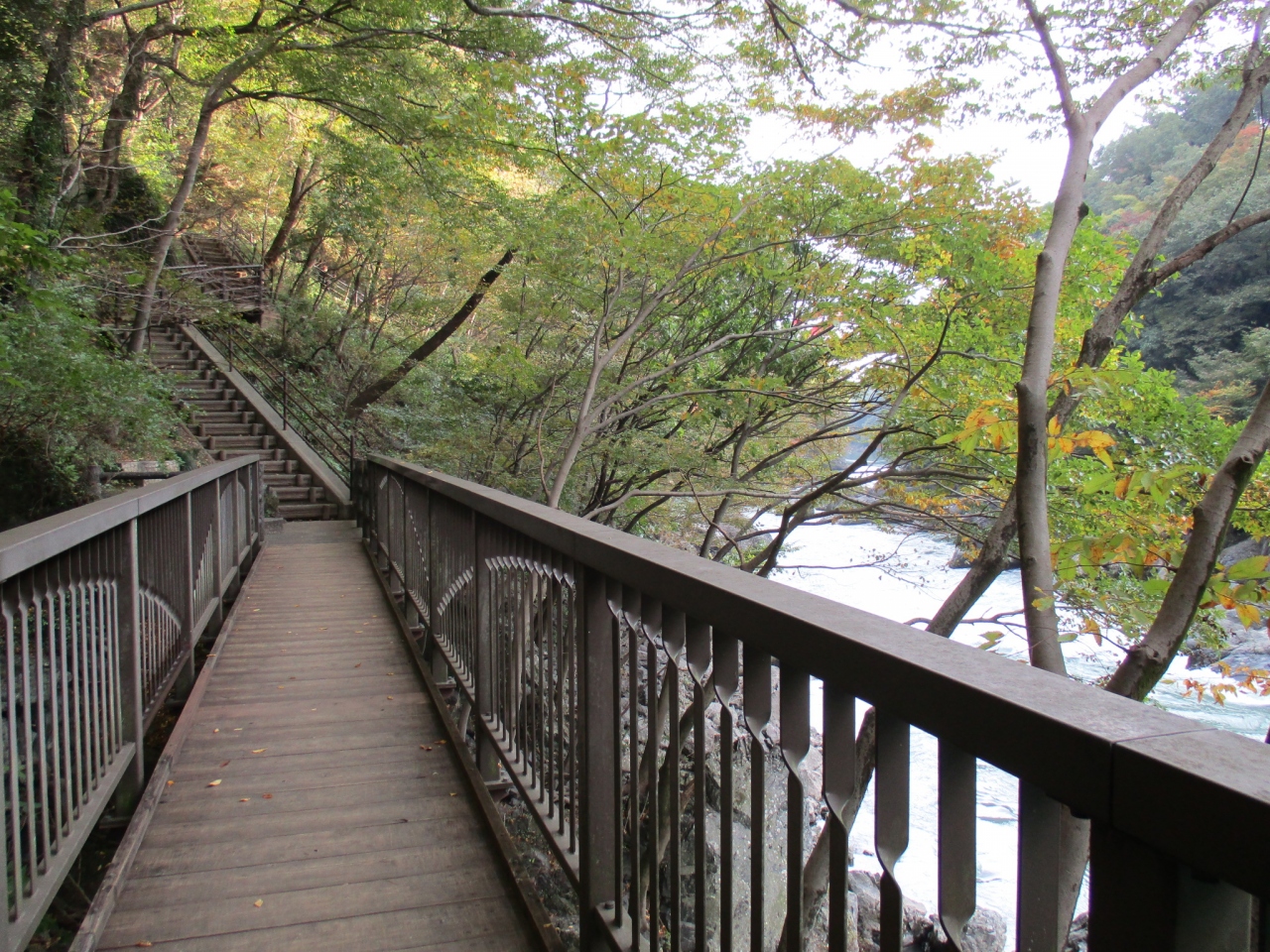 遊歩道も有り階段道のアップダウンがありますが、所用時間も20分程度と短いので渓谷散歩も楽しいです。