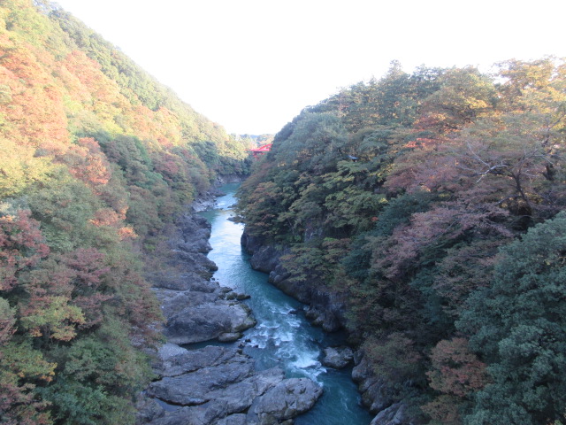 私が行った日は所々紅葉しているくらいだったのですが、それでも勢いの良い川の流れと川の両側に生い茂る木々が作り出すダイナミックな渓谷の景色はとても見ごたえがありました。11月中旬から下旬が一番紅葉が綺麗なのではないでしょうか。 閉じる投稿日:2017/11/05