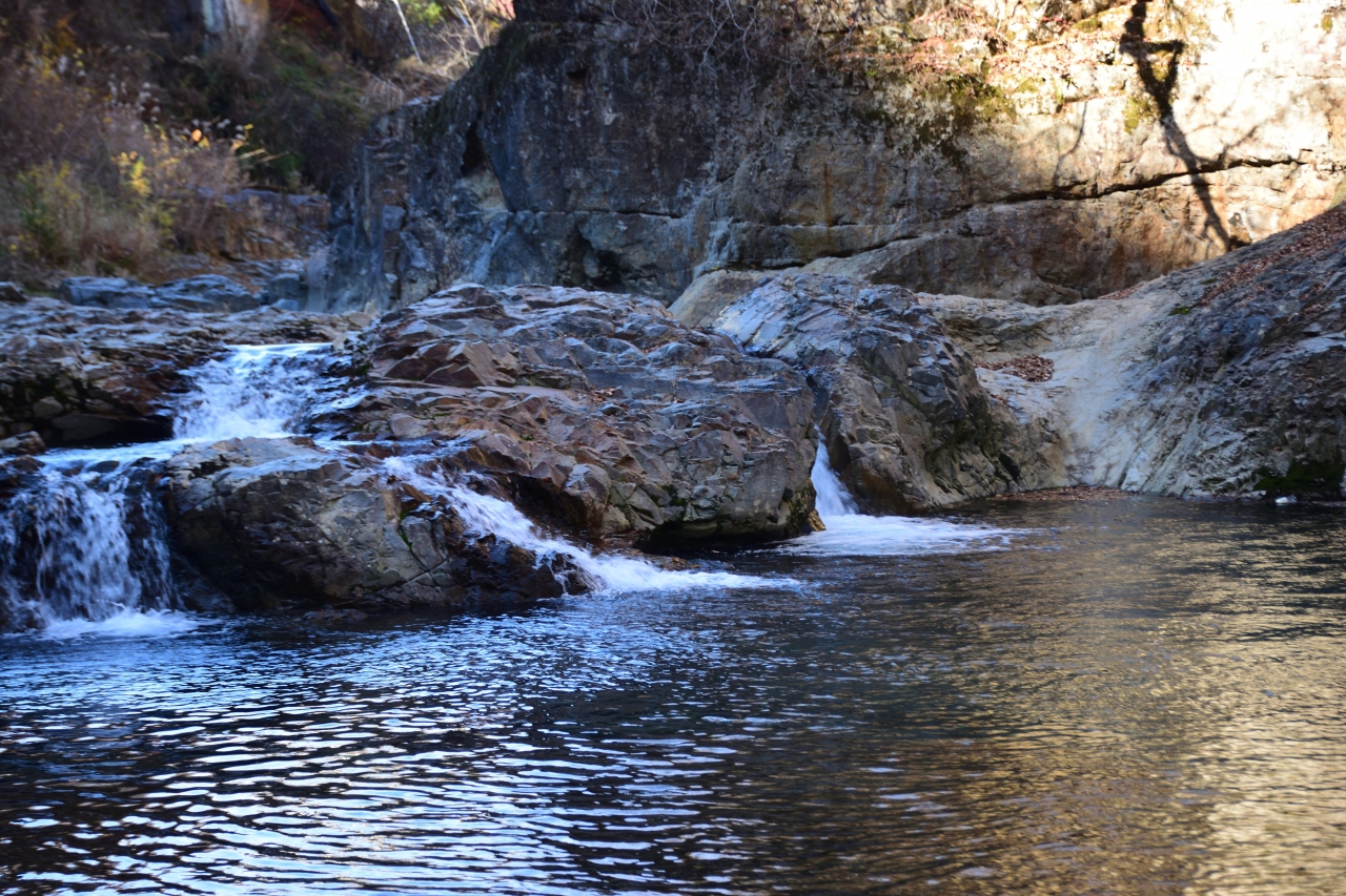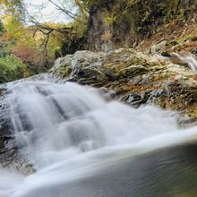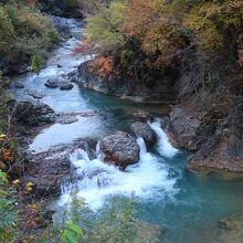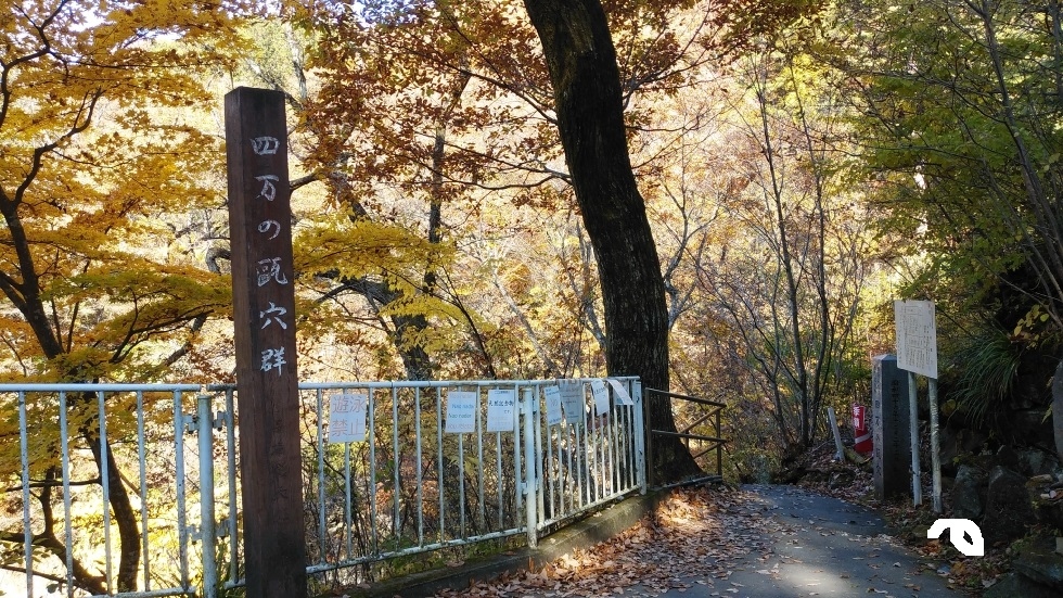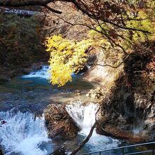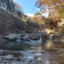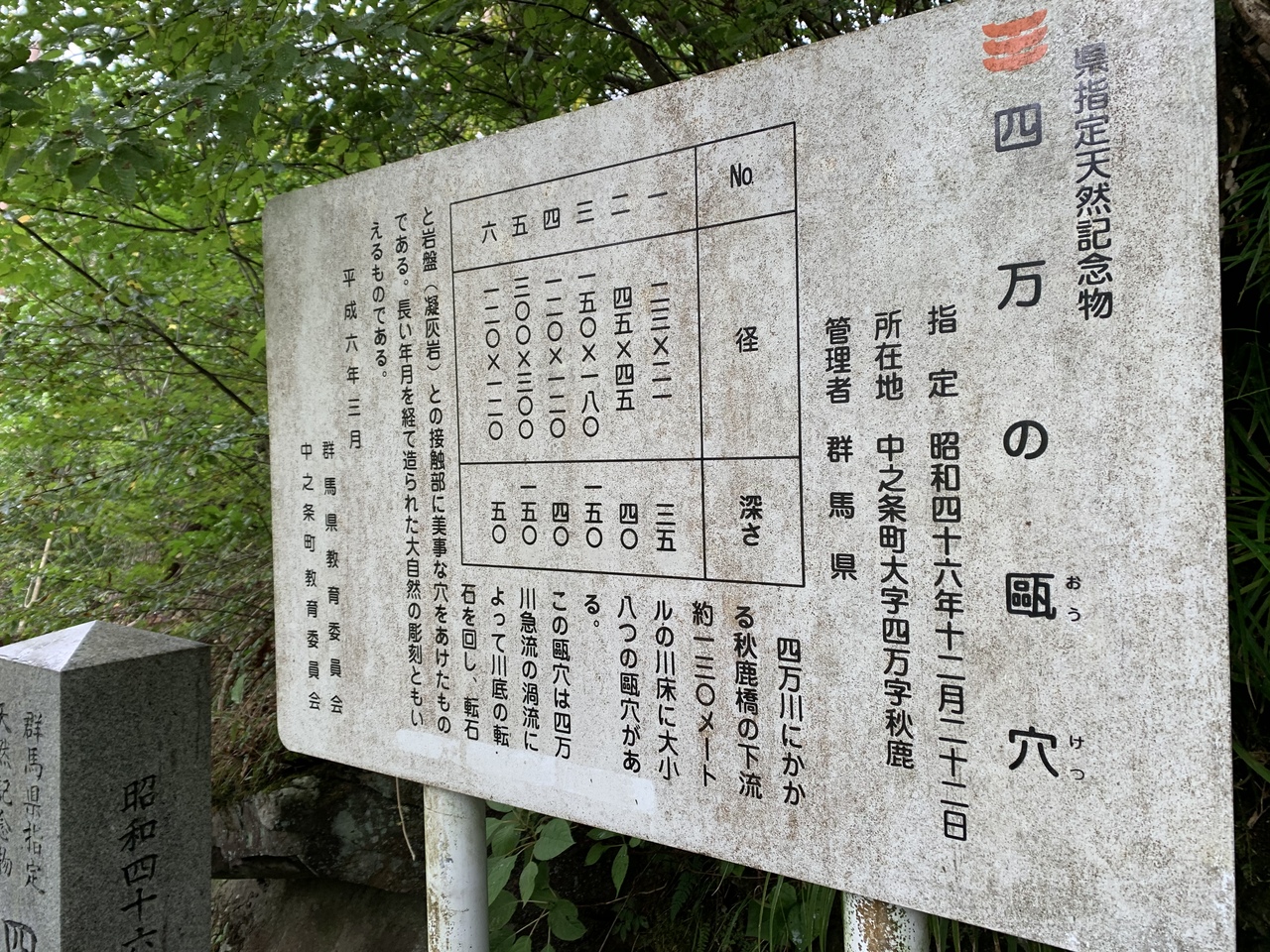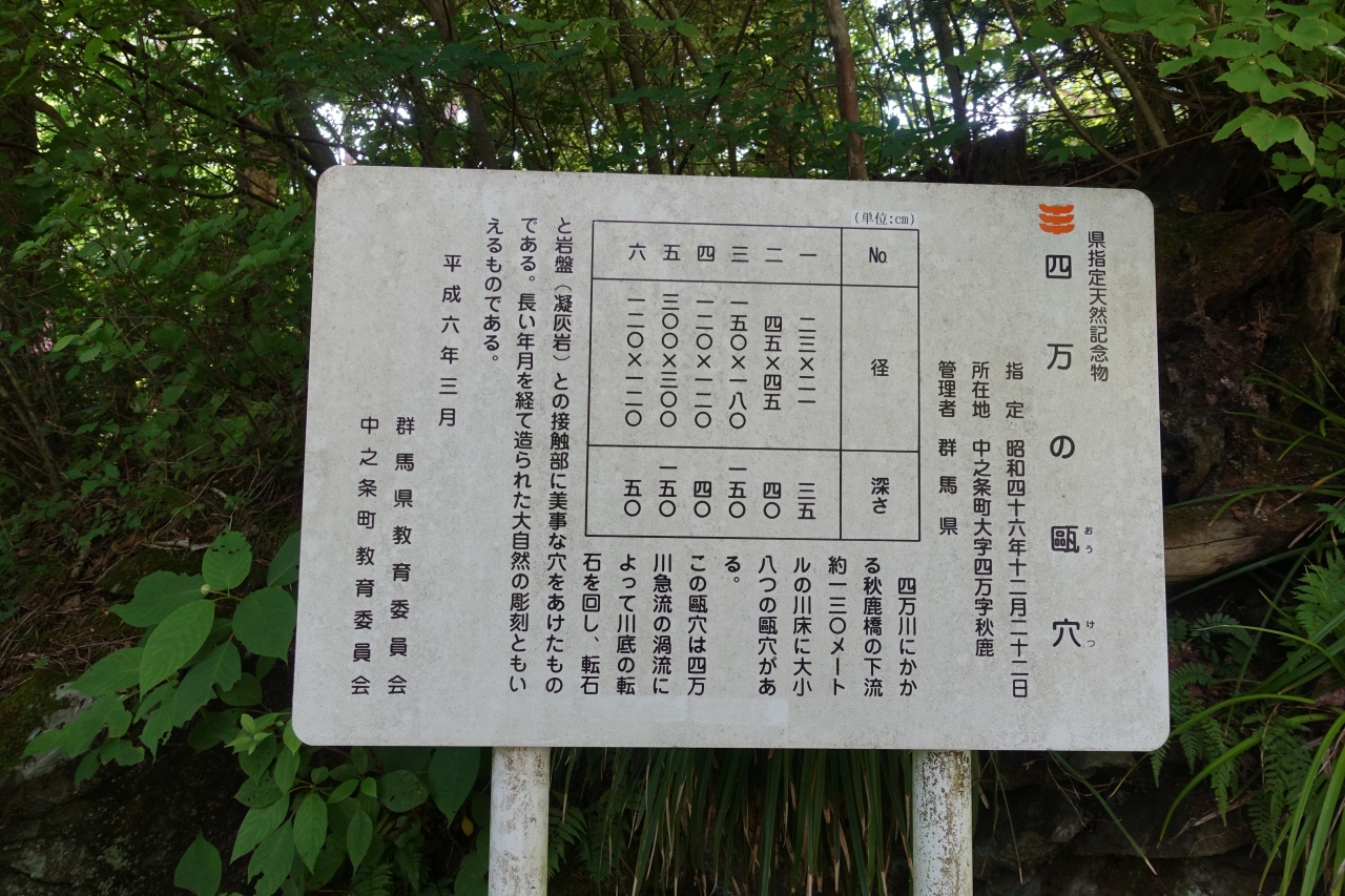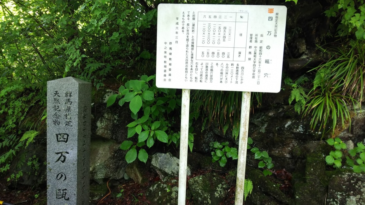 四万川に自然の力でできた丸い穴(甌穴)を見られる場所。群馬県指定天然記念物です。