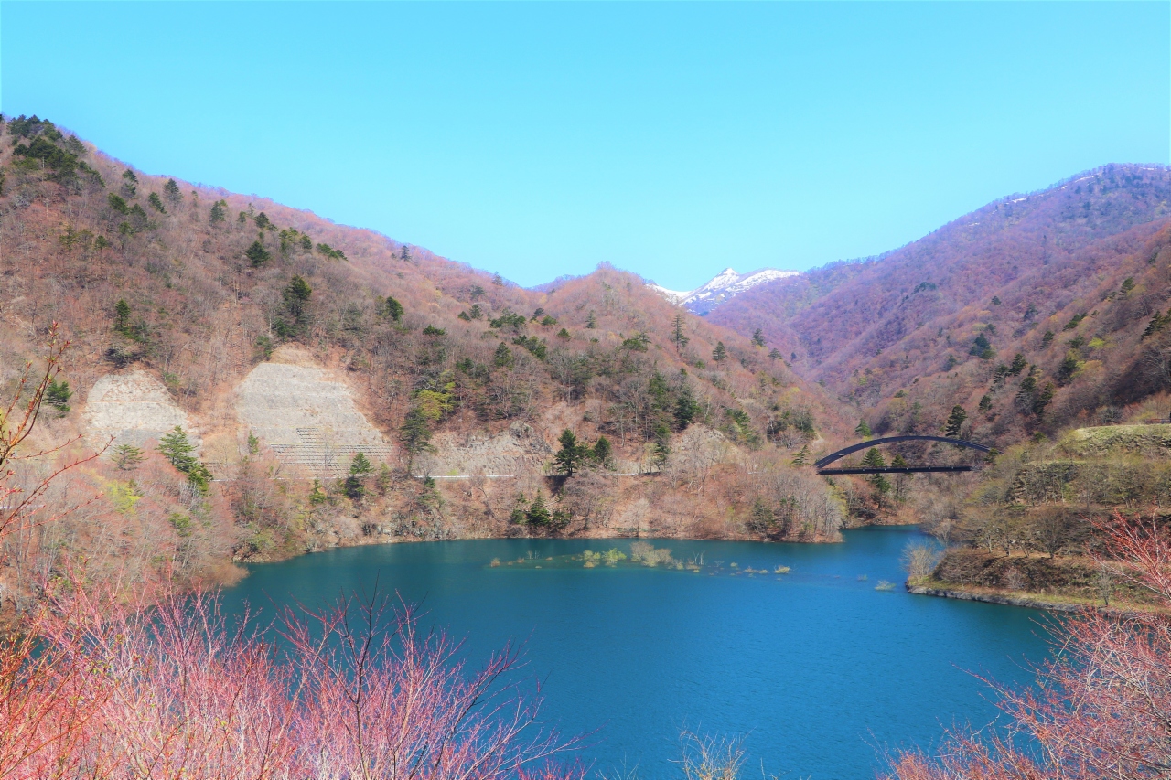 四万温泉の更に上流に四万川ダムが有り、そのダム湖が奥四万湖です。2022年の春に訪れました。奥四万湖の周囲の山... 続きを読むはまだ新緑ではなく、山桜が淡いピンク色の花を咲かせほんのりとした春色で、遠くに見る山には雪の冠が残り冬の残り香と春の足音がコラボした風景。四万ブルーの美しい湖色が映える春の光景が広がっていました。 閉じる