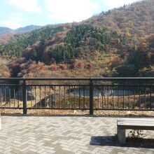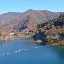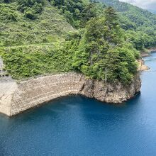 平成11年7月に完成。周辺にはダム資料館とカフェがある。「四万ブルー」と呼ばれる湖で、時期や天候によって湖の色が変わる。