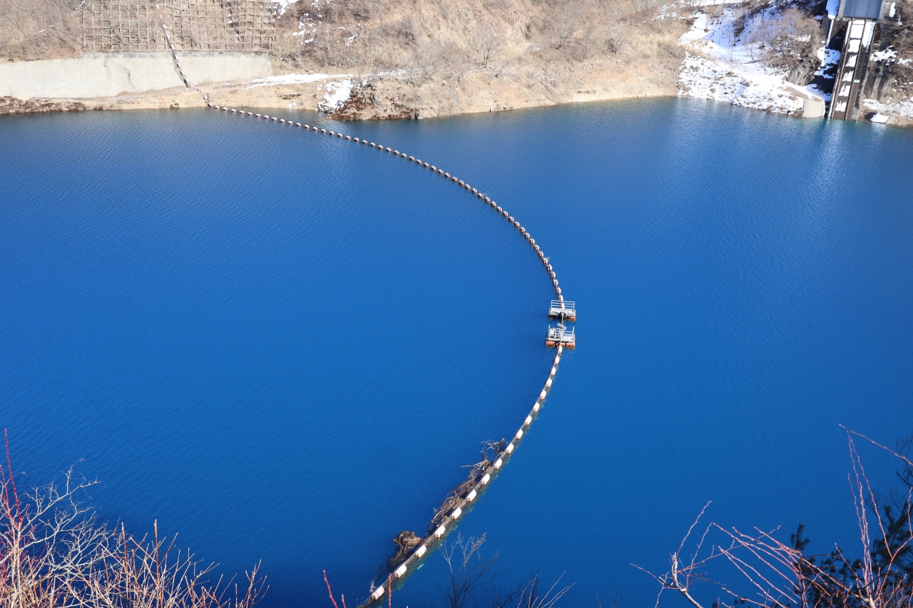 せせらぎ資料館の前の丘にある奥四万湖展望台からの景色