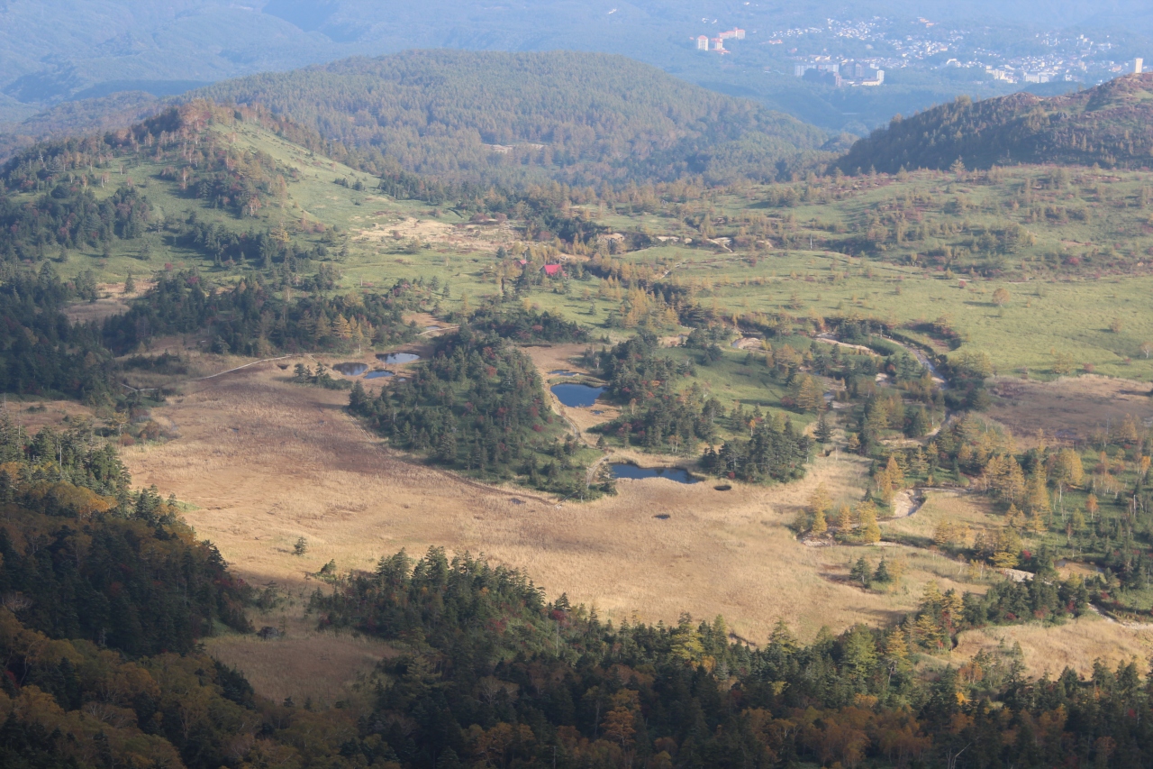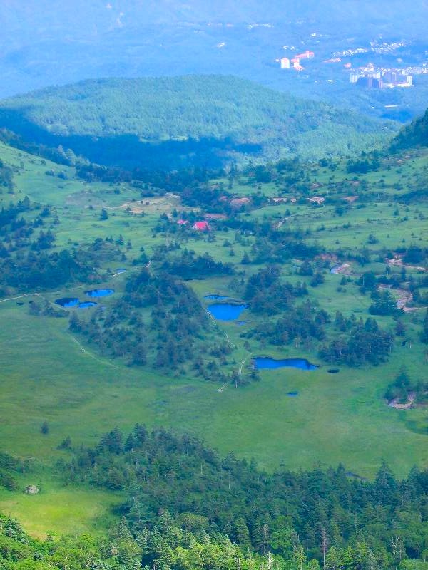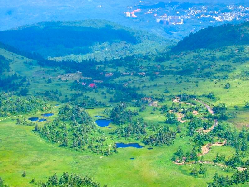 向こう側には,草津温泉が見える