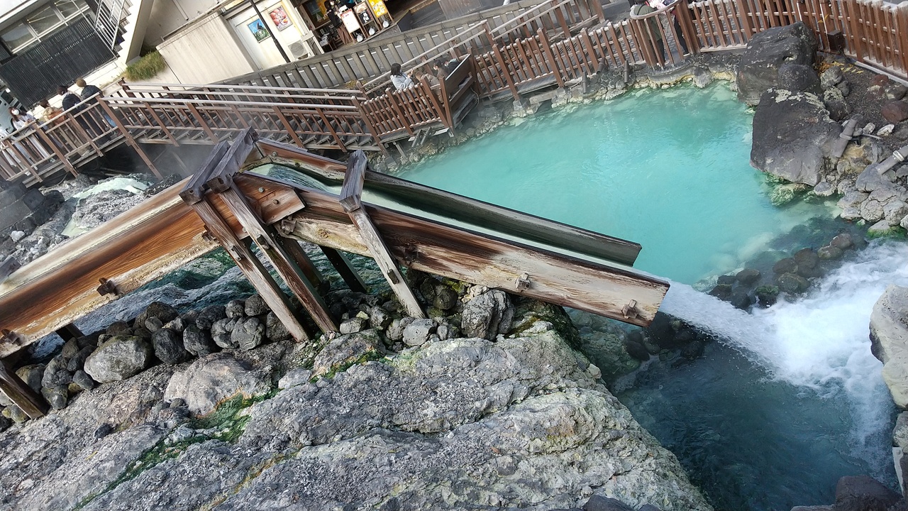 熱い源泉を冷やすため流しそうめんみたいな景観になっているのはここだけですし、一度は見る価値があるなあと思いました。