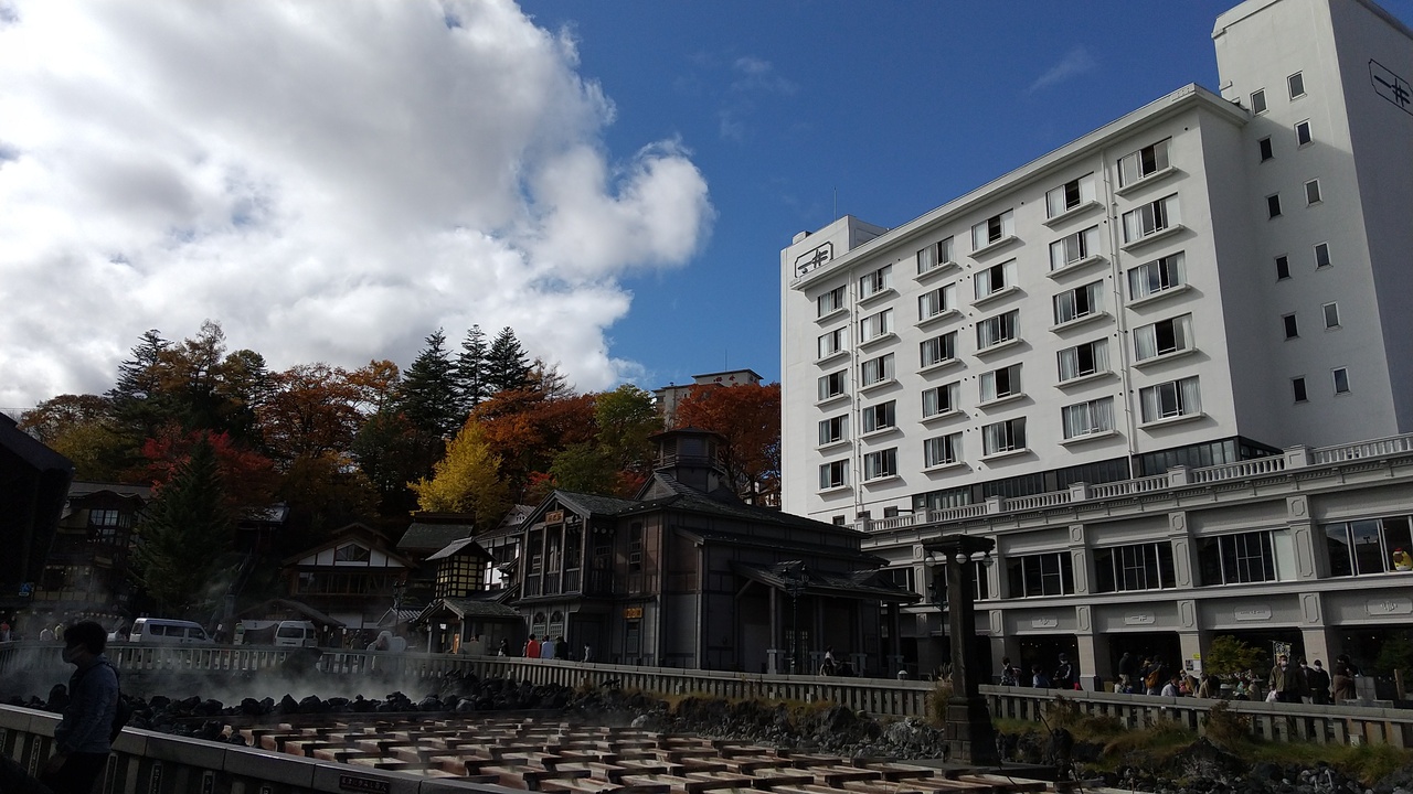 紅葉シーズンの草津はよいよ~なんて話もけっこう聞きますが、それはここ湯畑の景色とはあまり関係がありません。