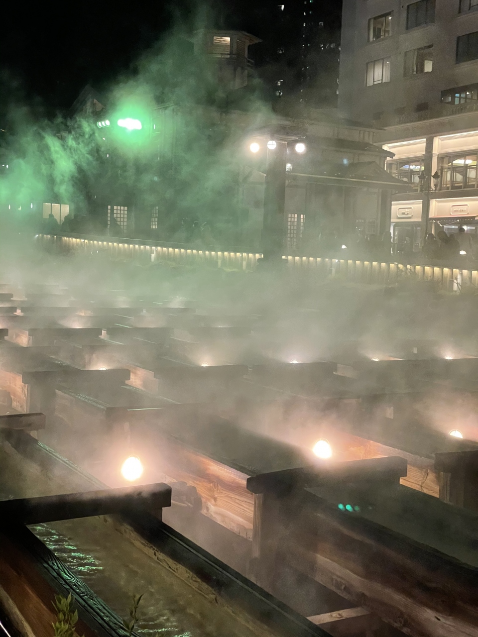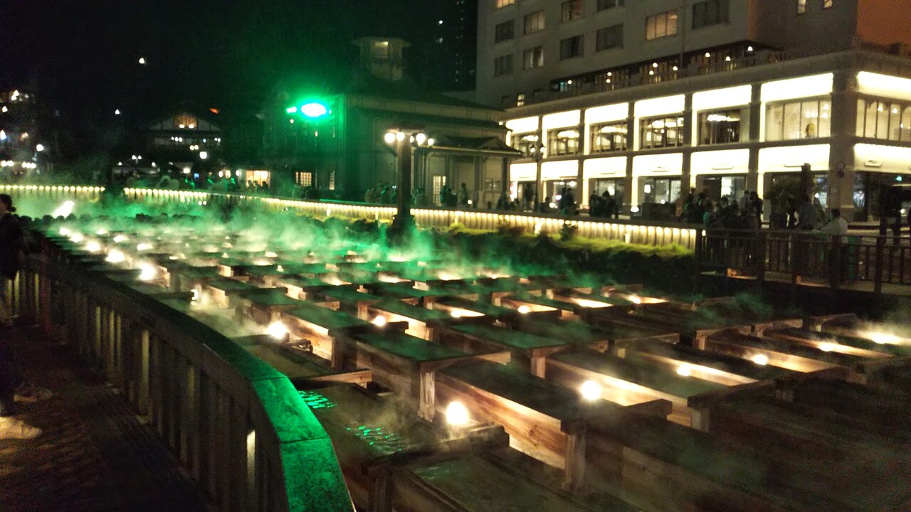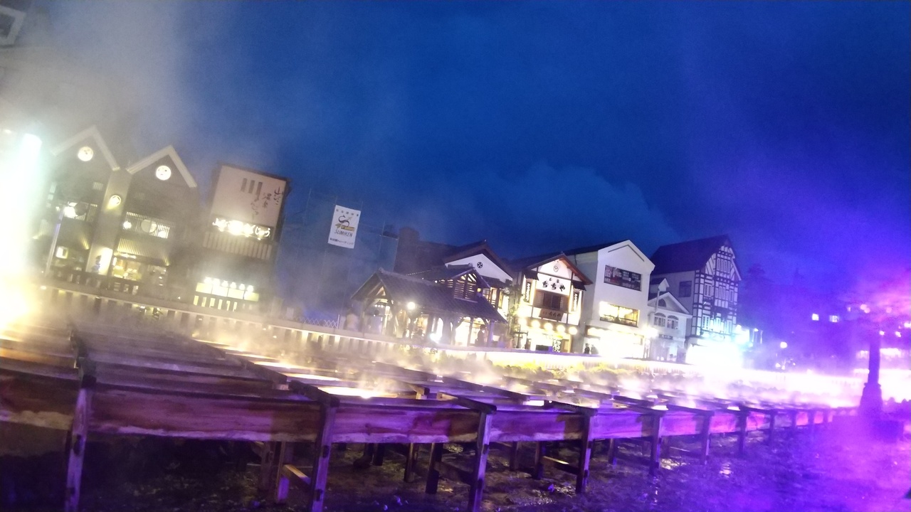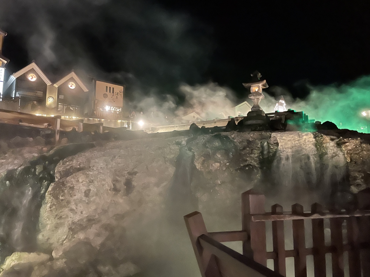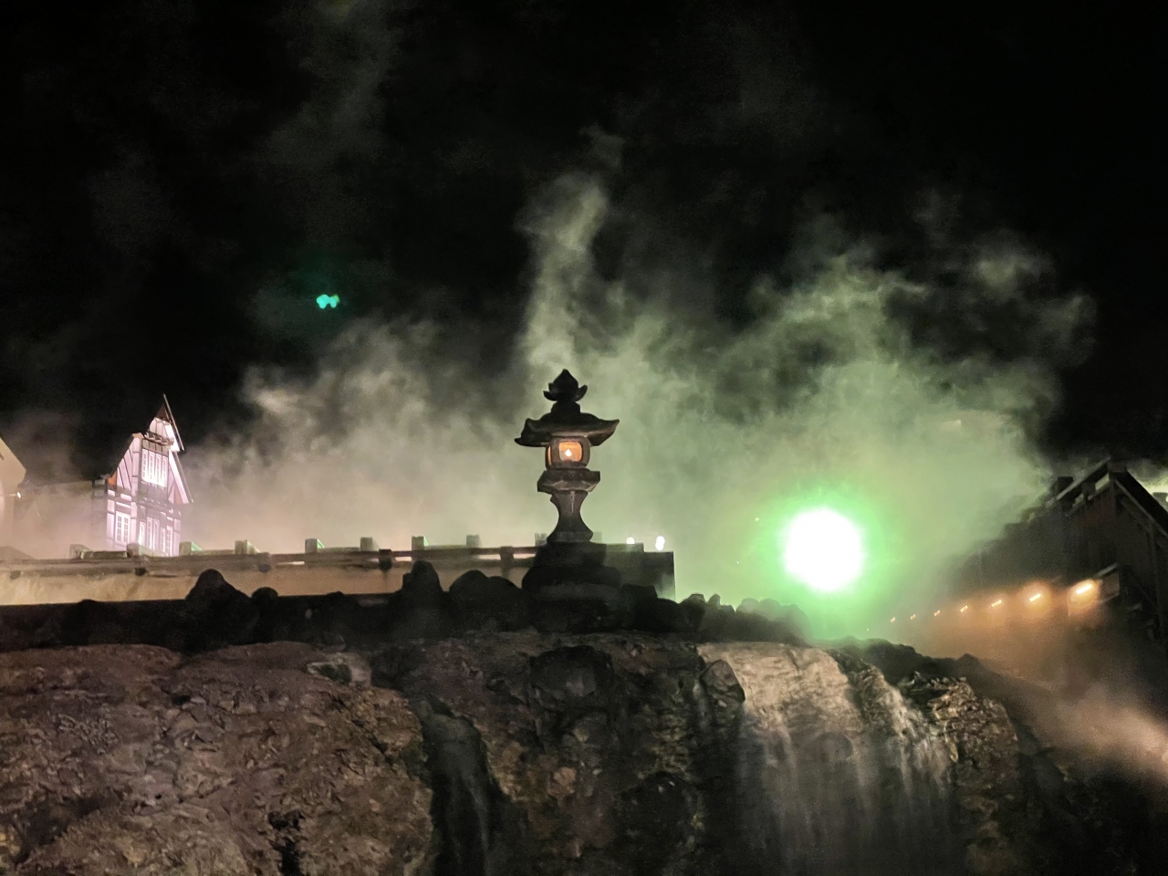 ライトアップされた夜の湯畑の雰囲気が良いです!
