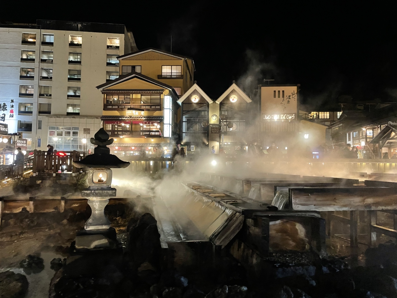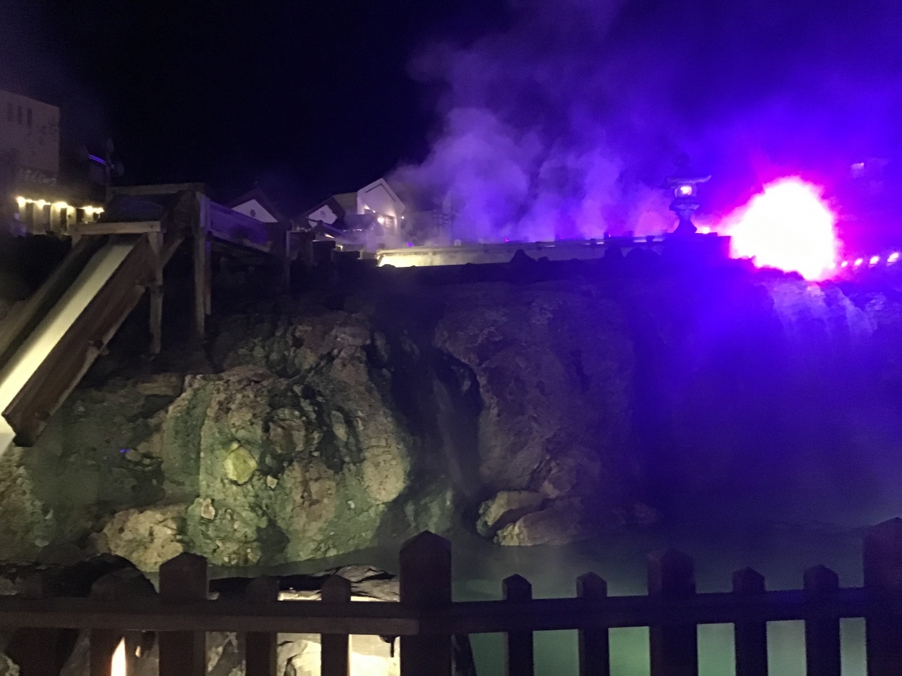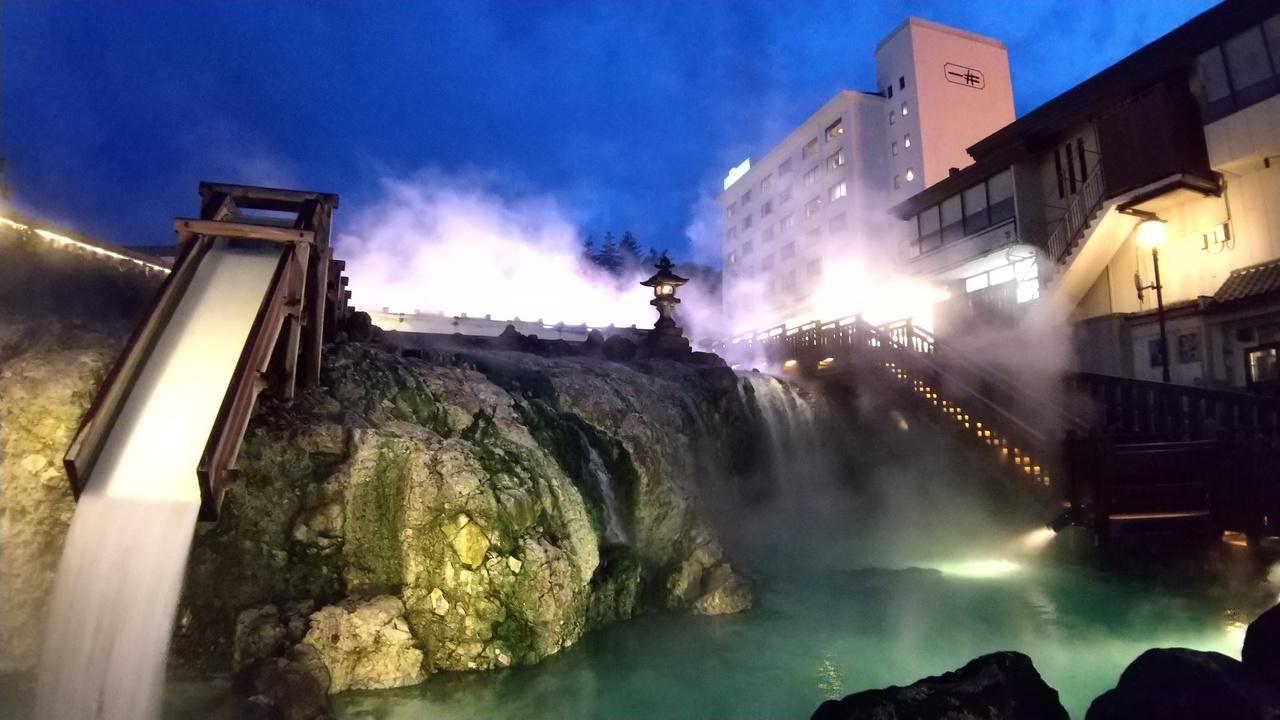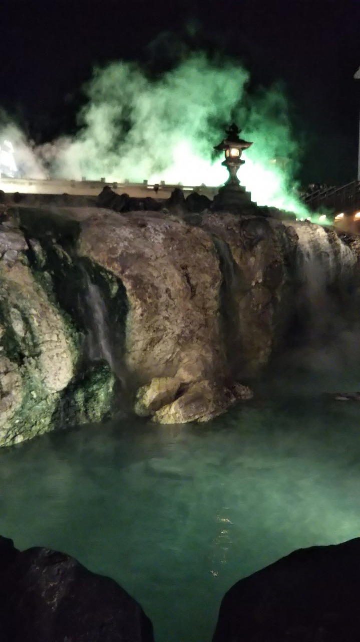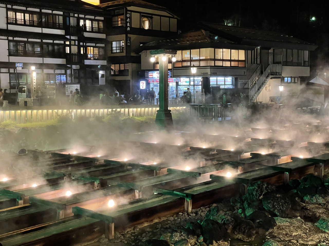 ライトアップされた夜の湯畑の雰囲気が良いです!