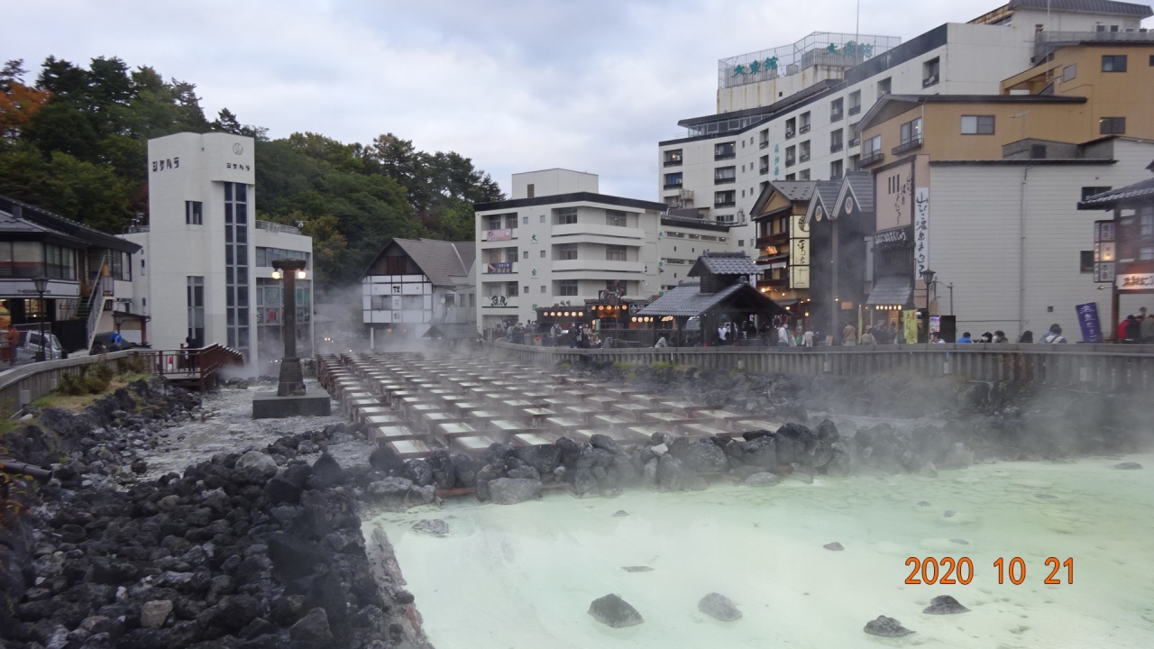 このため、駐車場は周辺に移転されてそこから湯畑へ歩くことになります。