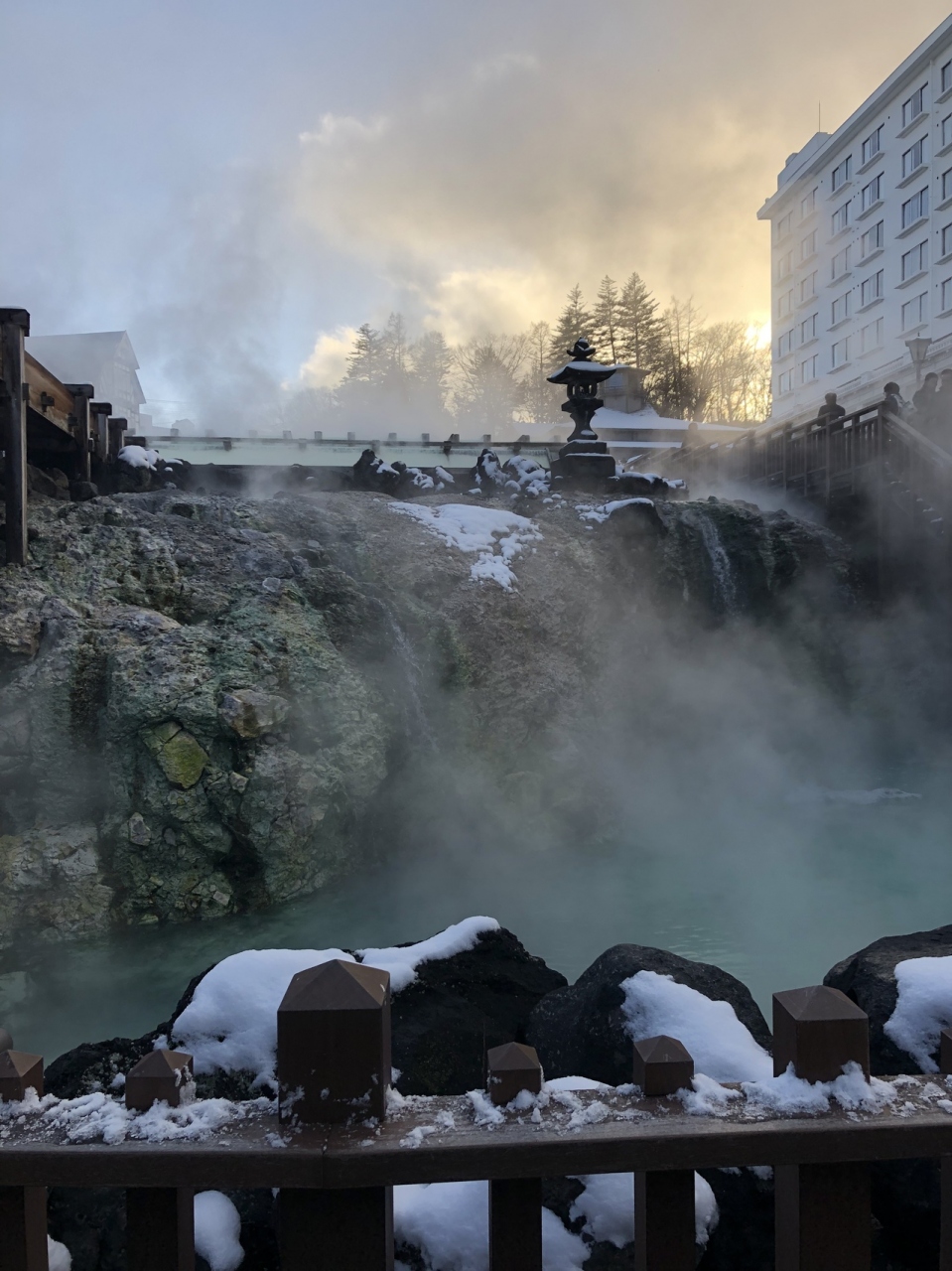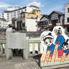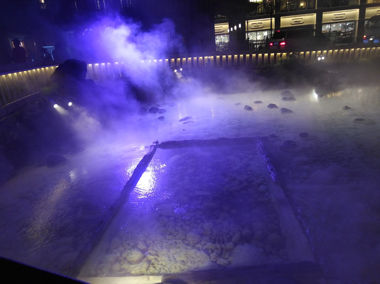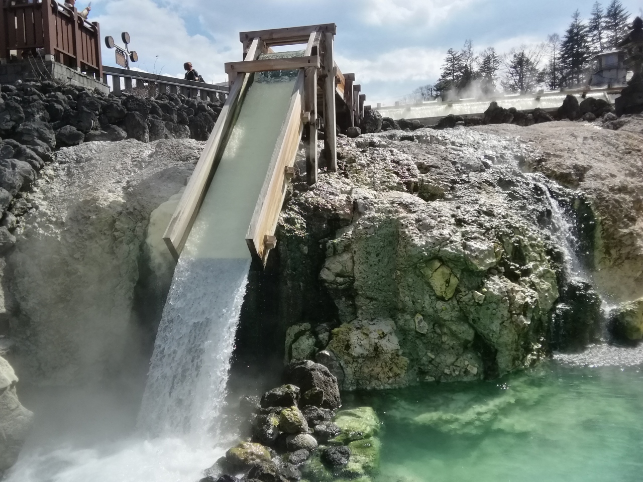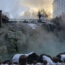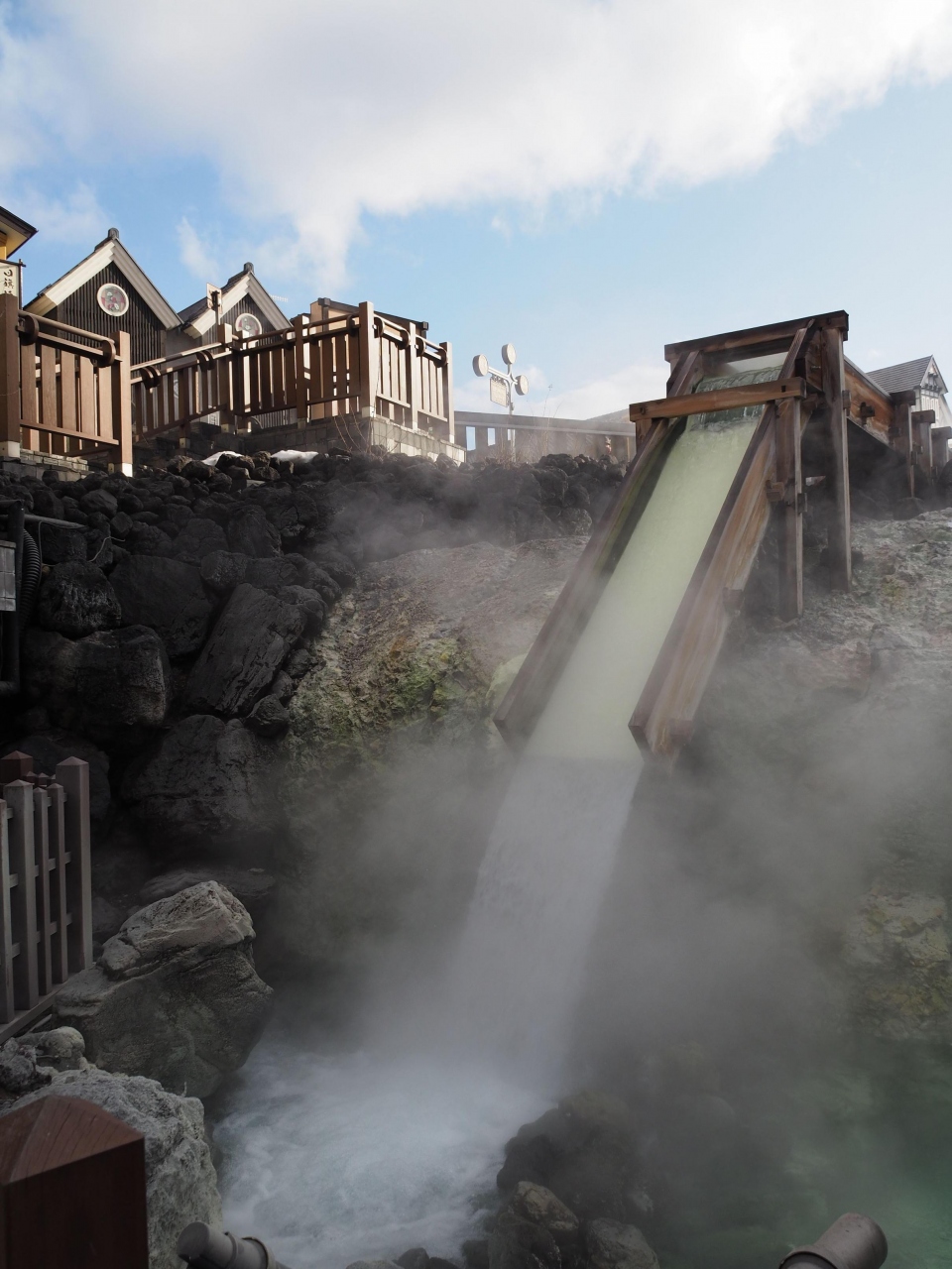 旅館街の中央にある草津温泉最大の源泉で、石柵に囲まれた幅20m、高さ60mの中から毎分約4,000リットルの熱湯が湧き出ており、硫気で黄緑色になった湯は何条もの木樋に流され、泉温を下げ、湯の花を採取して各旅館に送られる。