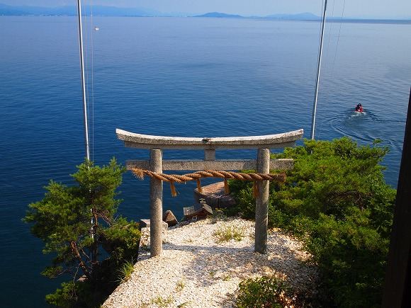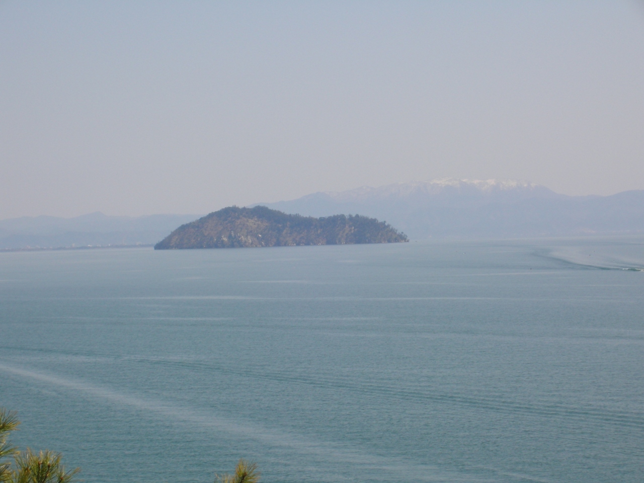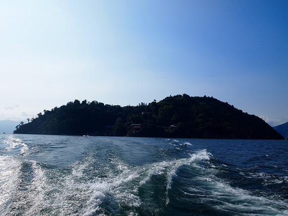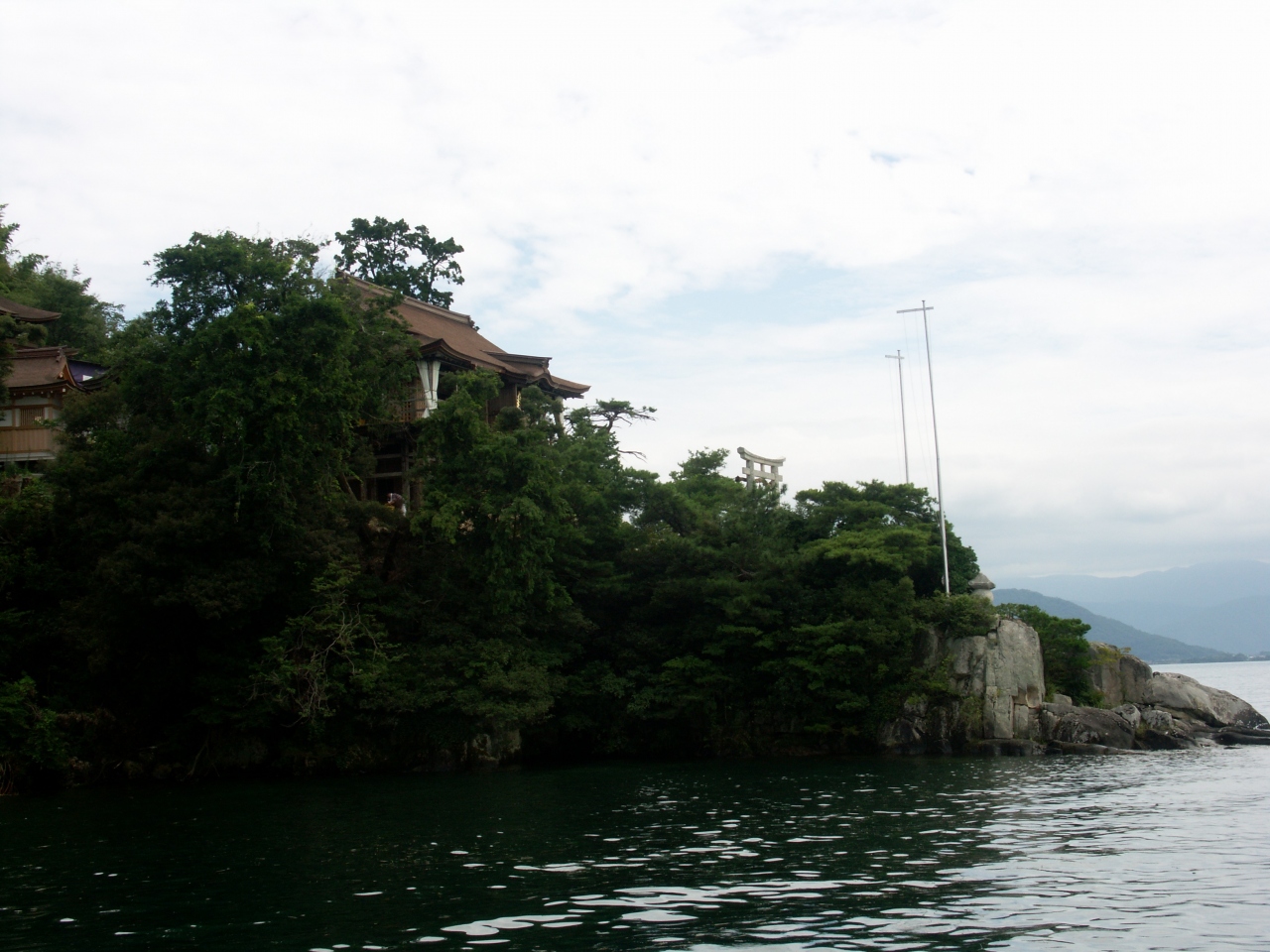 周囲数kmの小さな島ですが、標高が高いのか今津の港から出航してすぐに分かる、けっこう存在感のある島です。弁才天(弁財天)の... 続きを読む聖地として昔から知られていたらしく、伝説では行基菩薩が聖武天皇の勅使として遣わされ、弁才天像を彫刻したことが開基となっているそうで、伝教大師、弘法大師が修行に訪れたこともあるそうです。